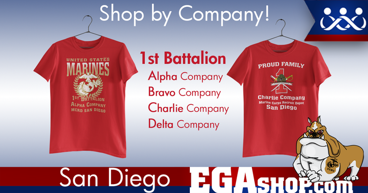 Shop by Company! Alpha, Bravo, Charlie, Delta. 1st Battalion San Diego Marine Corps Boot Camp Graduation Shirts and Hoodies