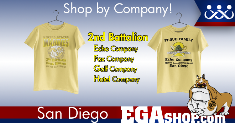 Shop by Company! Echo, Fox, Golf, Hotel. 2nd Battalion San Diego Marine Corps Boot Camp Graduation Shirts and Hoodies