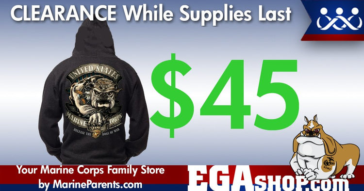 Hoodie: Marine Corps Bulldog, Black Hoodie (Clearance)