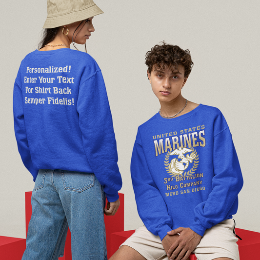 Enter your choice of personalized text to the back of these boot camp battalion T-Shirts, Hoodies, and Sweatshirts. Youth sizes available as T-Shirts.