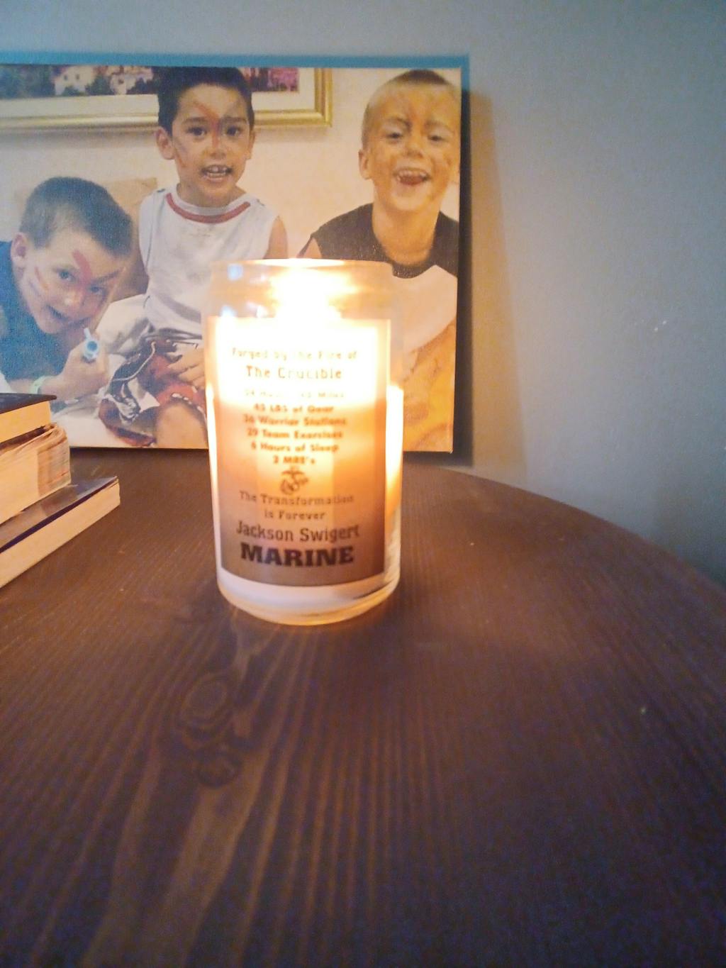 Recruit Crucible Candle PERSONALIZED with your soon-to-be Marine's name! Light this candle during your recruit's crucible. Enter your custom text for the name. Limit of 18 characters including spaces and punctuation.