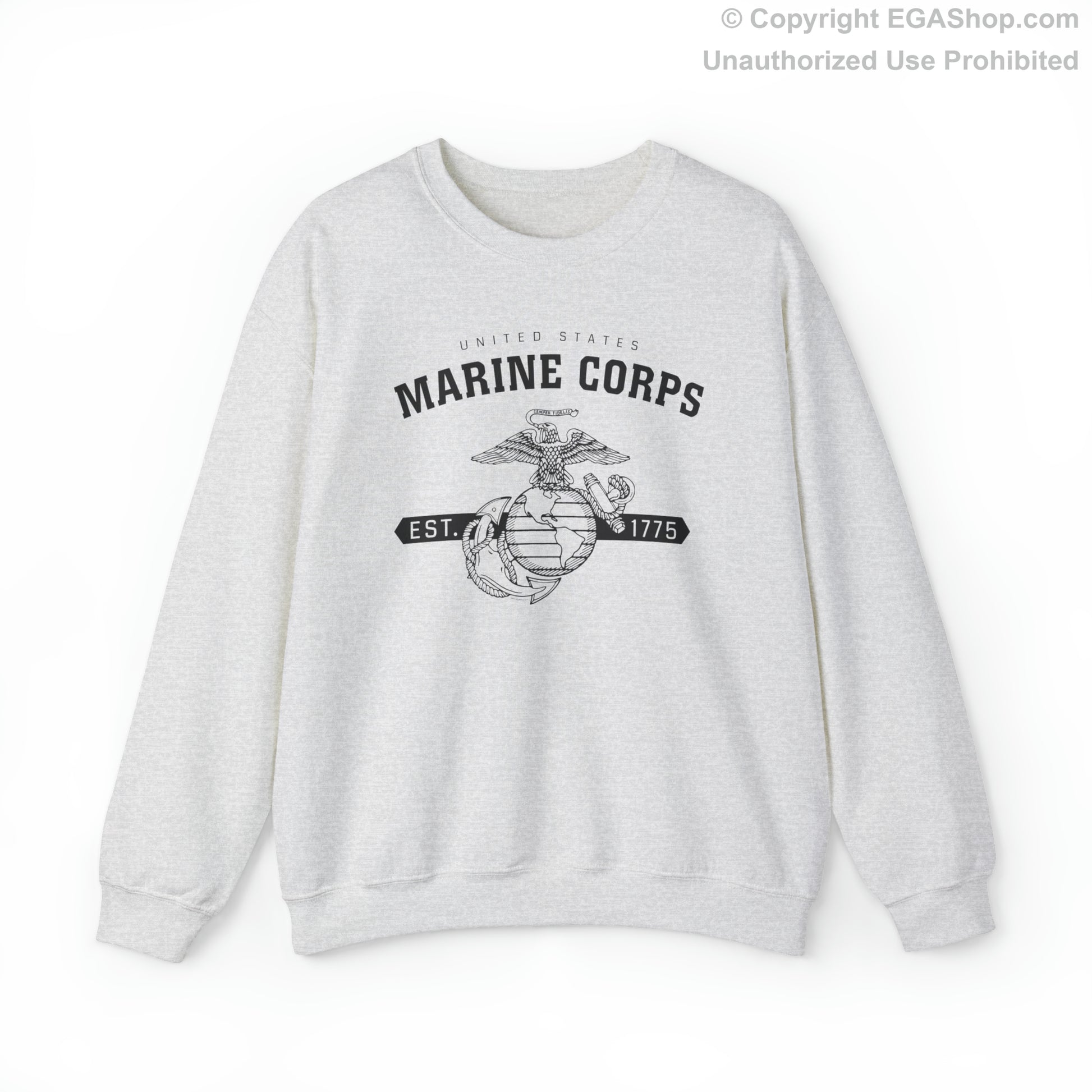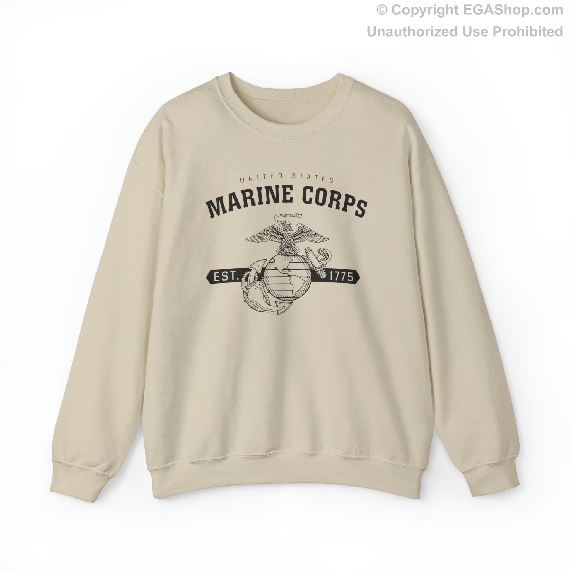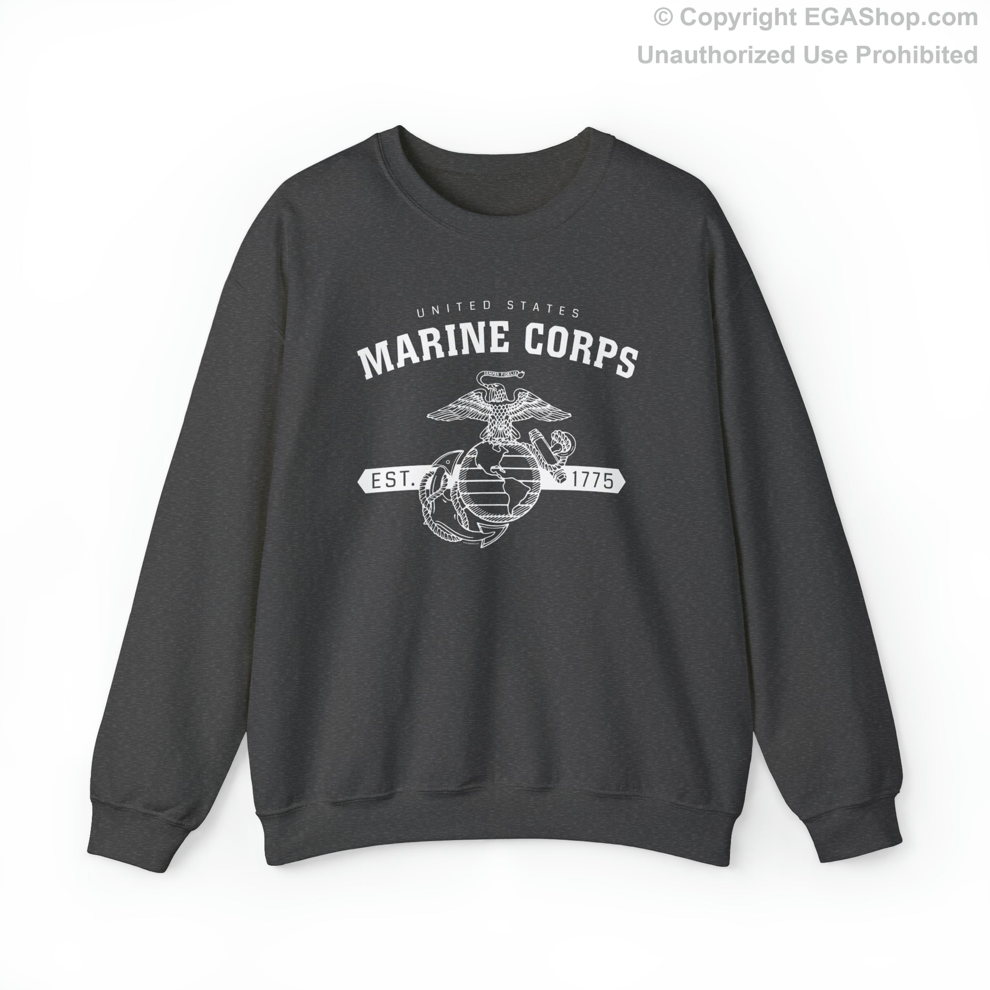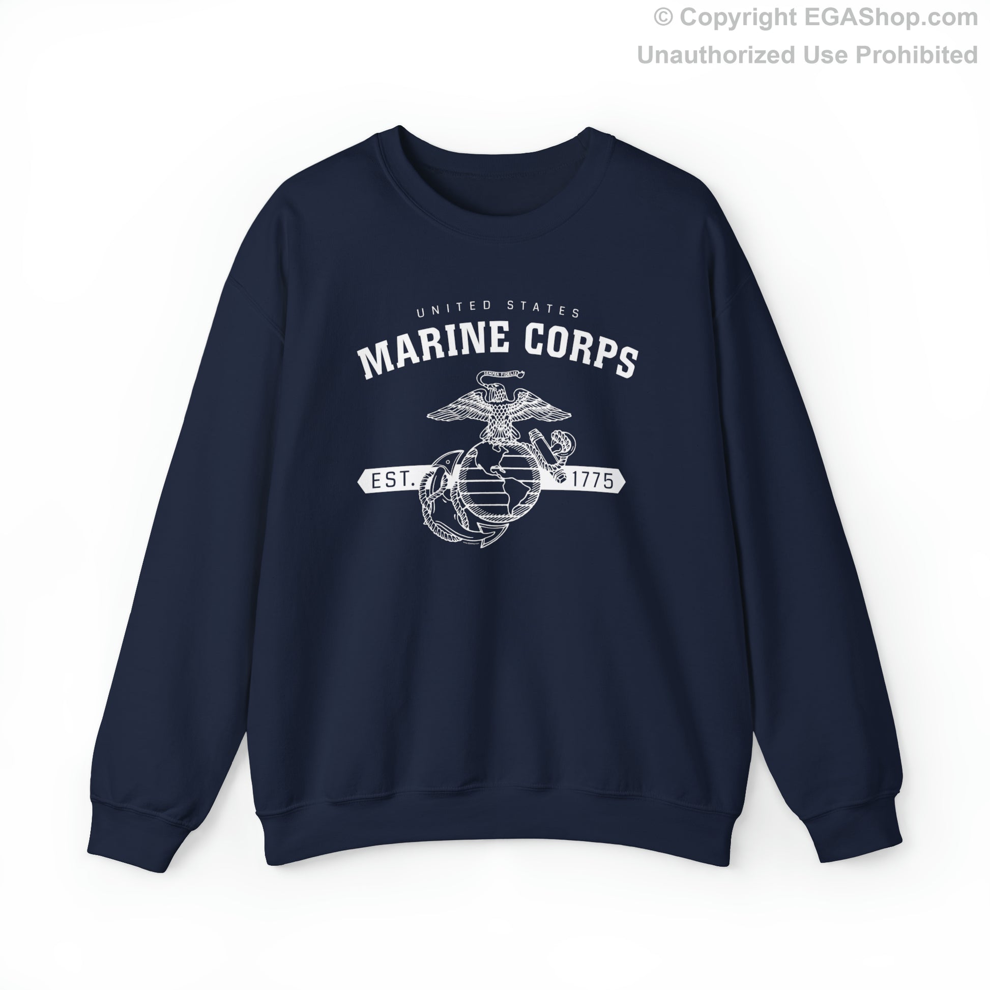 This design features the Marine Corps Eagle, Globe and Anchor (EGA) with a banner including the year 1775, in which the Marine Corps was established, on the front. The back is blank.