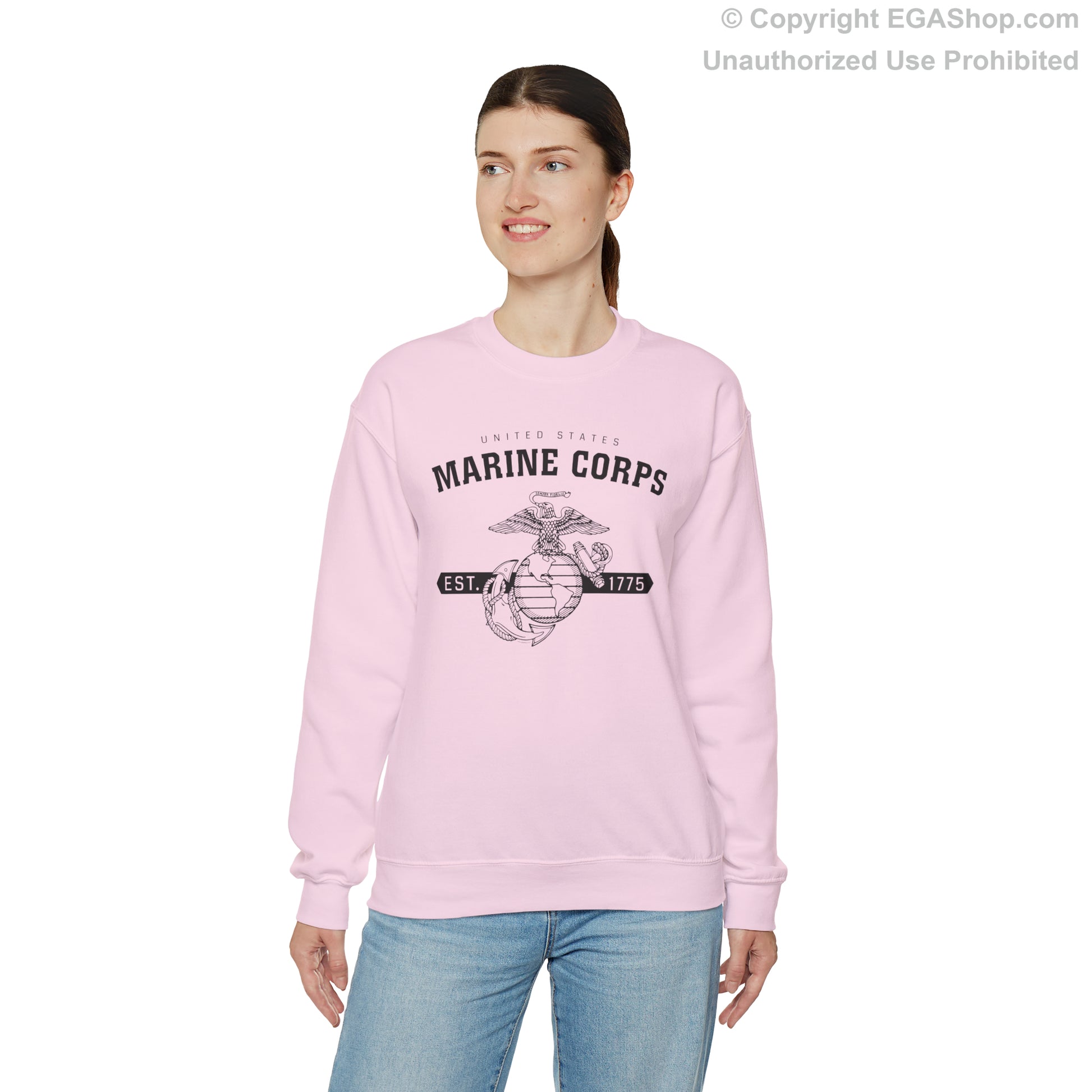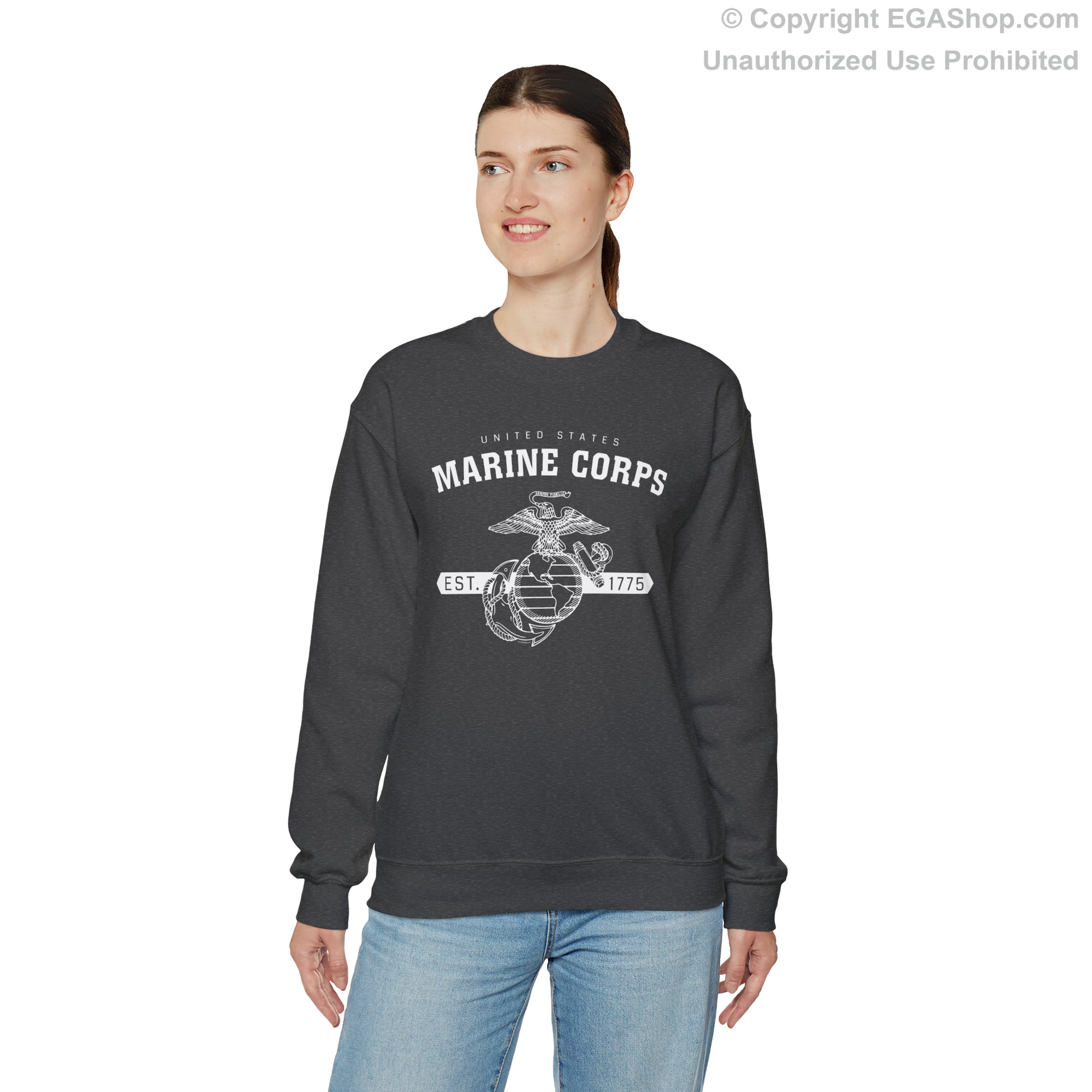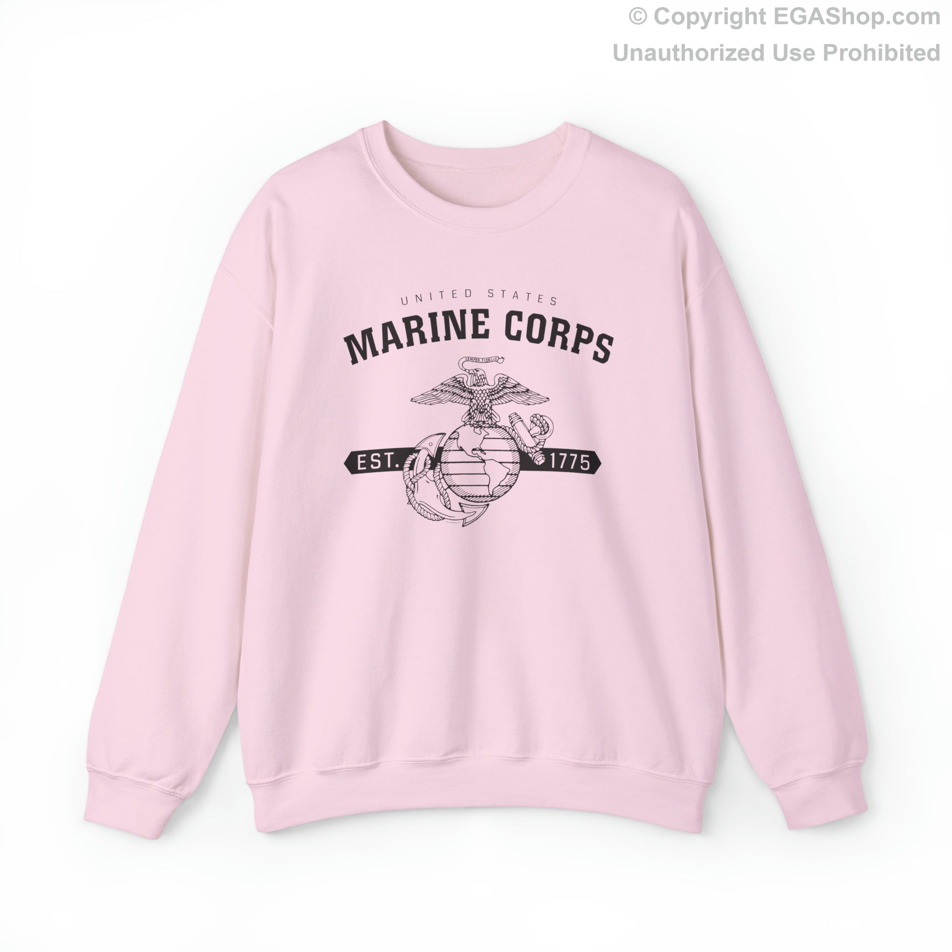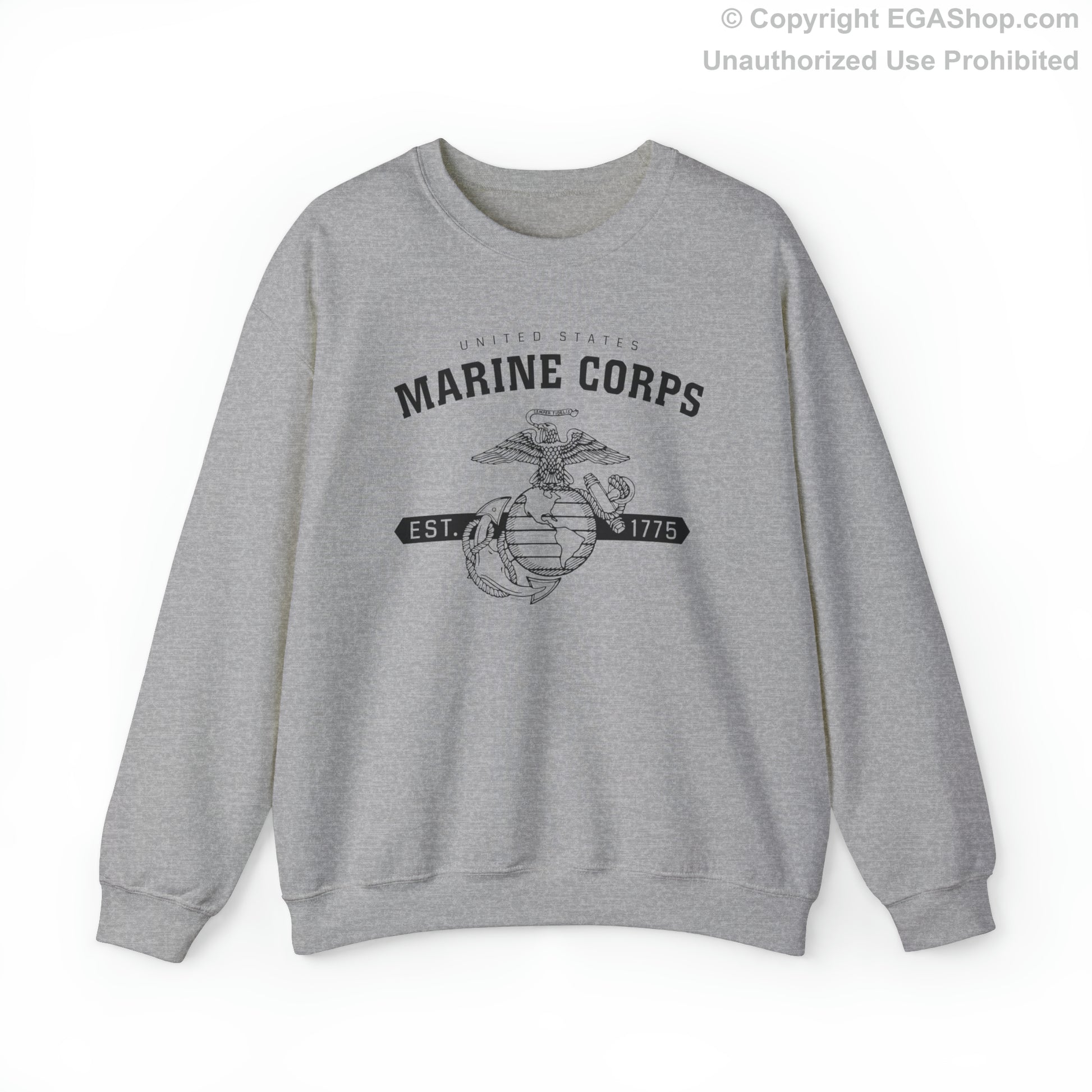 This design features the Marine Corps Eagle, Globe and Anchor (EGA) with a banner including the year 1775, in which the Marine Corps was established, on the front. The back is blank.