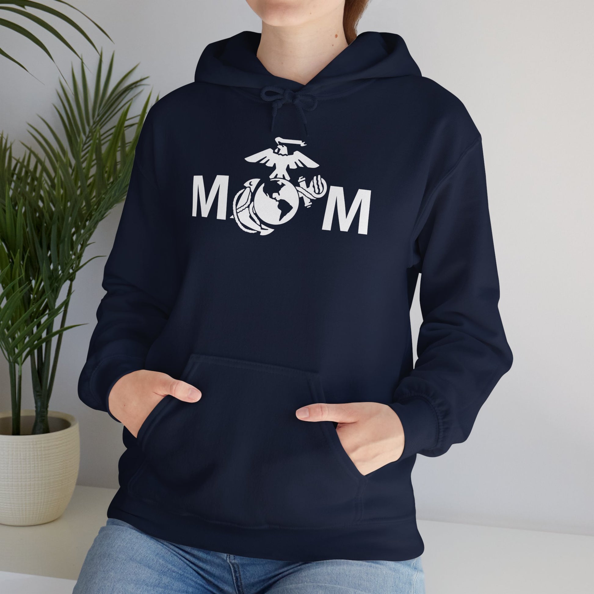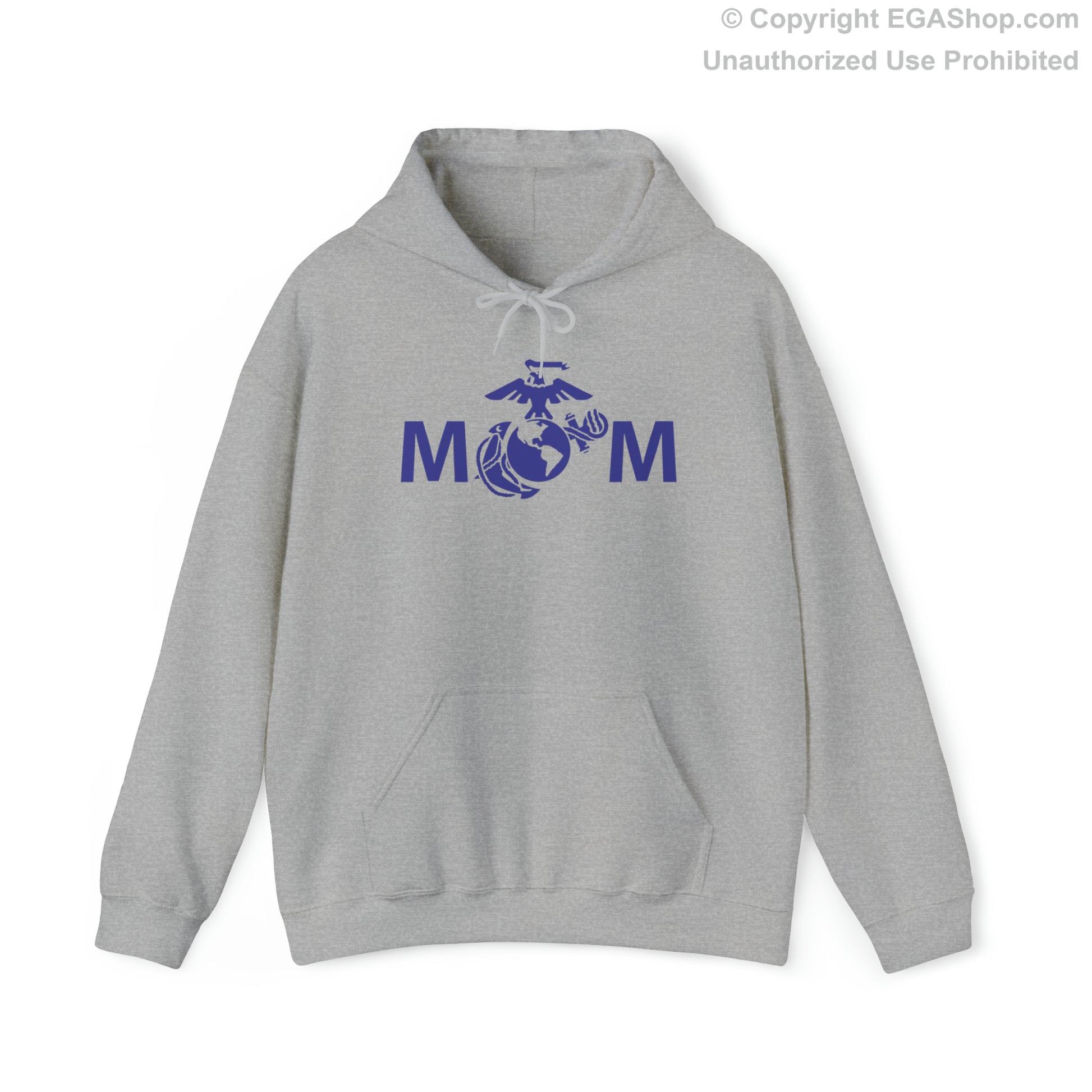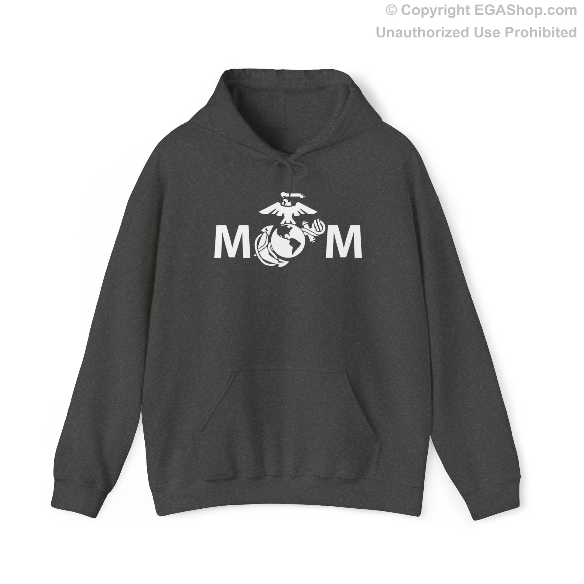 MoM on the front of the hoodie says it all. We replaced the letter "o" in MoM with the Marine Corps Eagle, Globe, and Anchor (EGA). This is sure to be your favorite hoodie! In your choice of colors. The back is blank.