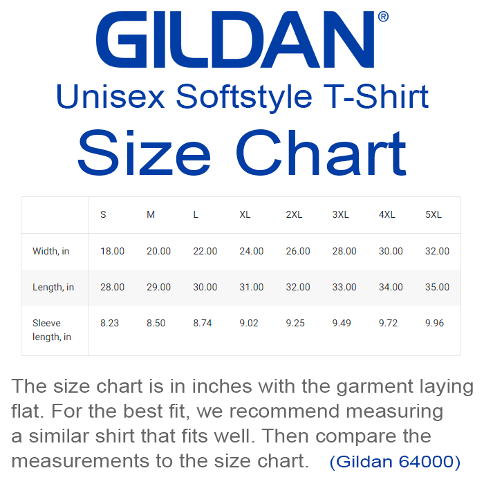 - Unisex, Gildan 64000 Softstyle T-Shirt, sizes Small to 3X