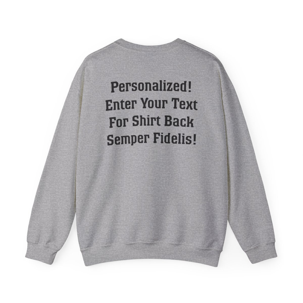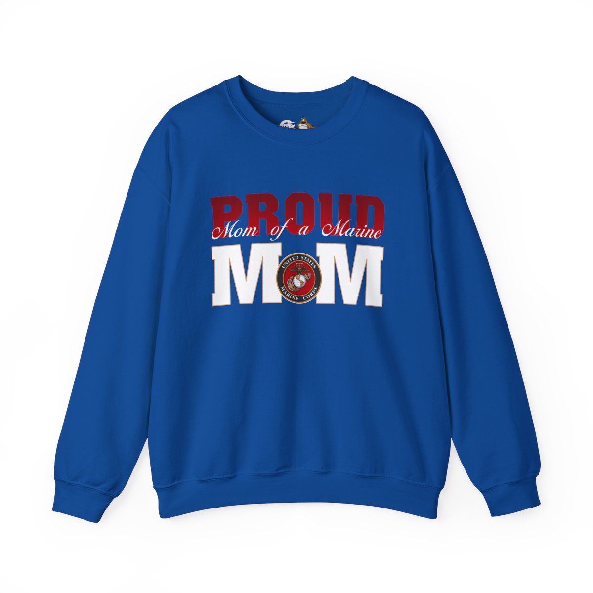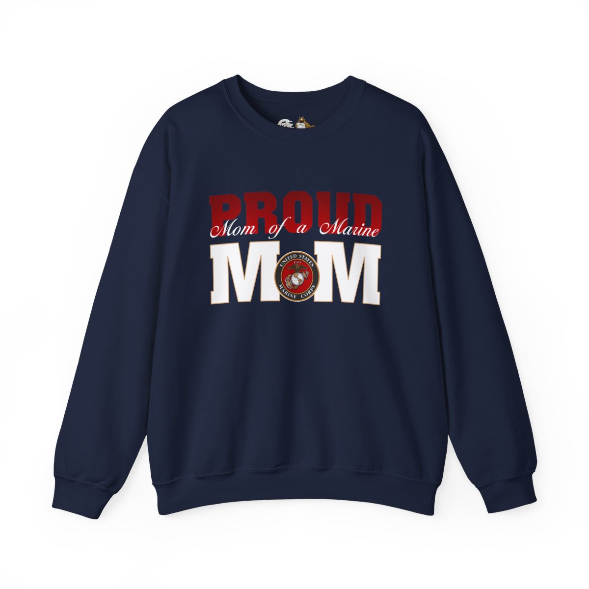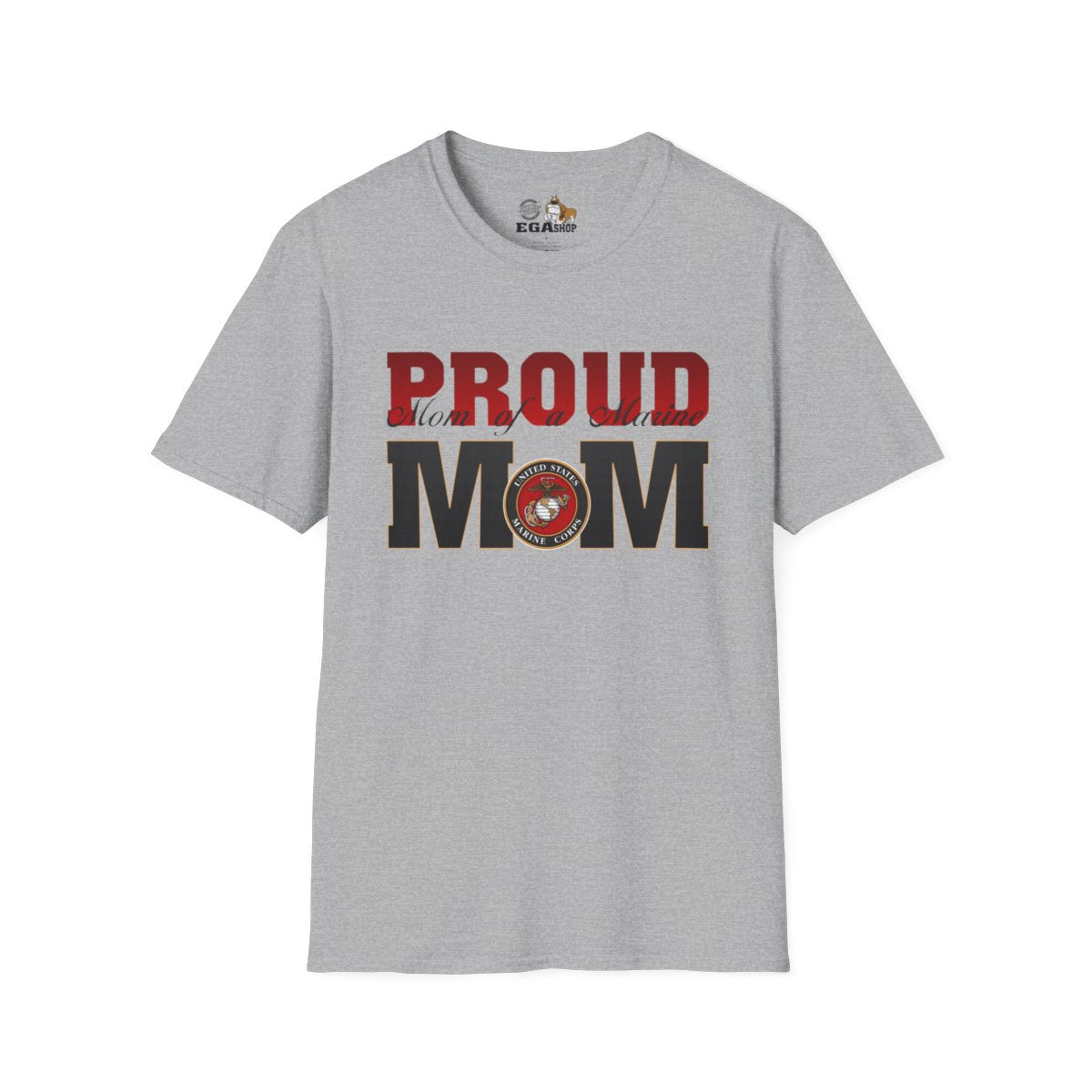 This design features Proud MoM on the front where the O in MoM is the Marine Corps Seal. In the text PROUD it reads "Mom of a Marine." You choose the shirt style and add your text to the back.