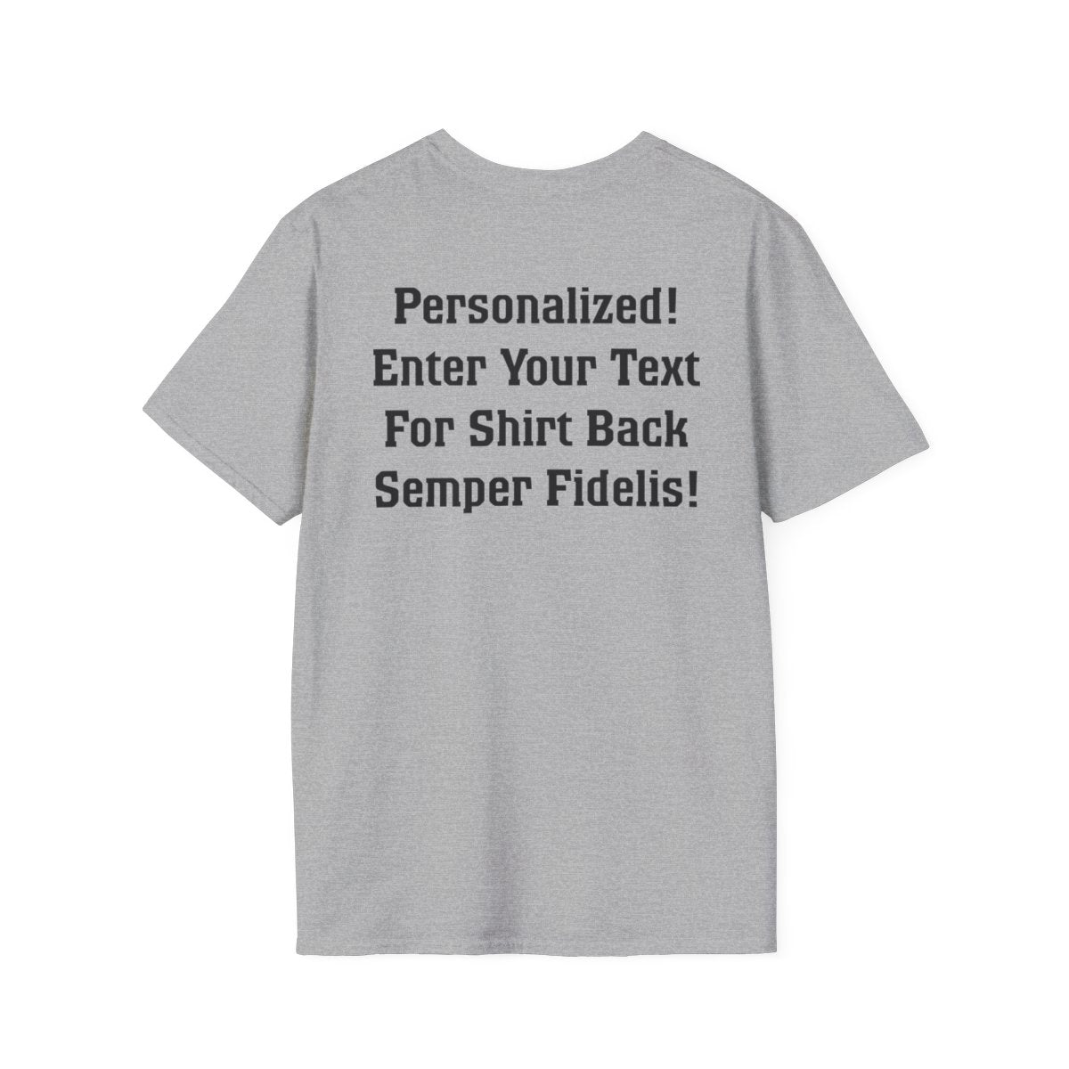 Personalize the BACK: 1-) choose shirt style, size and color, 2-) type your personalized text for the BACK of the shirt, 3-) tap the "Add to cart" button. Limit 15 characters per line including spaces. Back text is 1-4 lines. PLEASE review your text before clicking "add to cart". What you enter is how we will print the shirt.