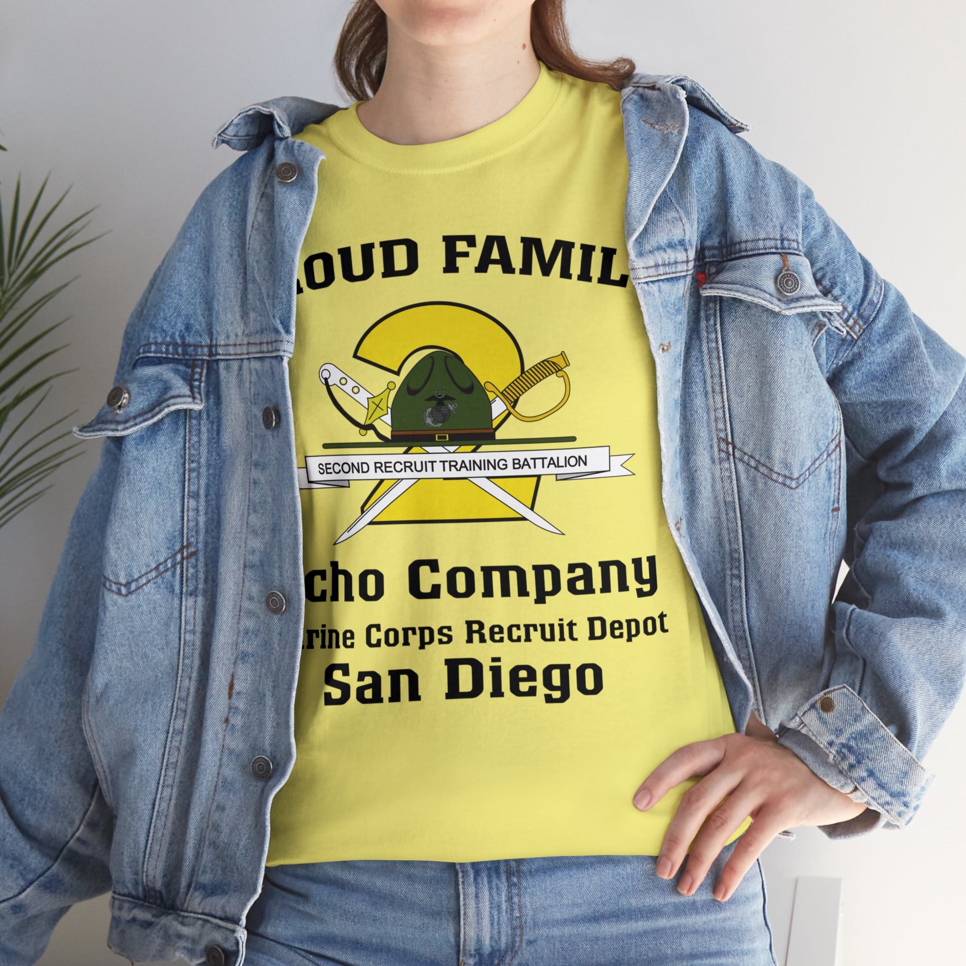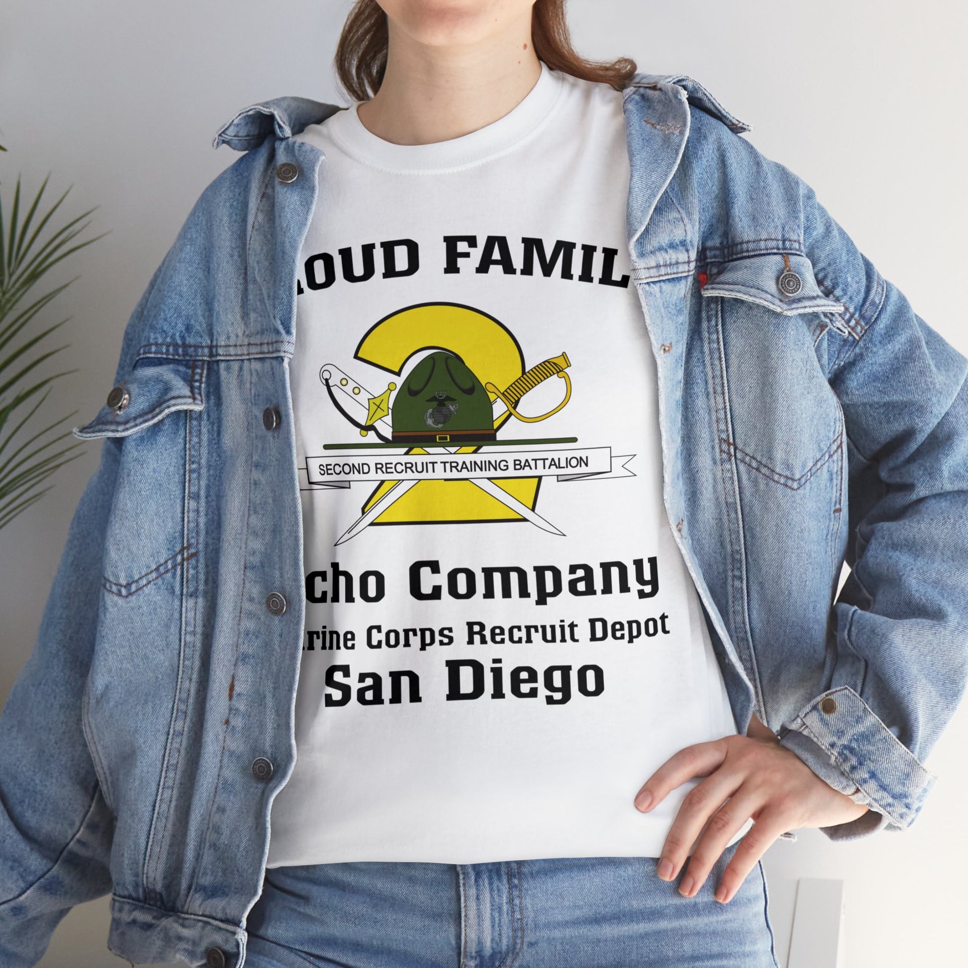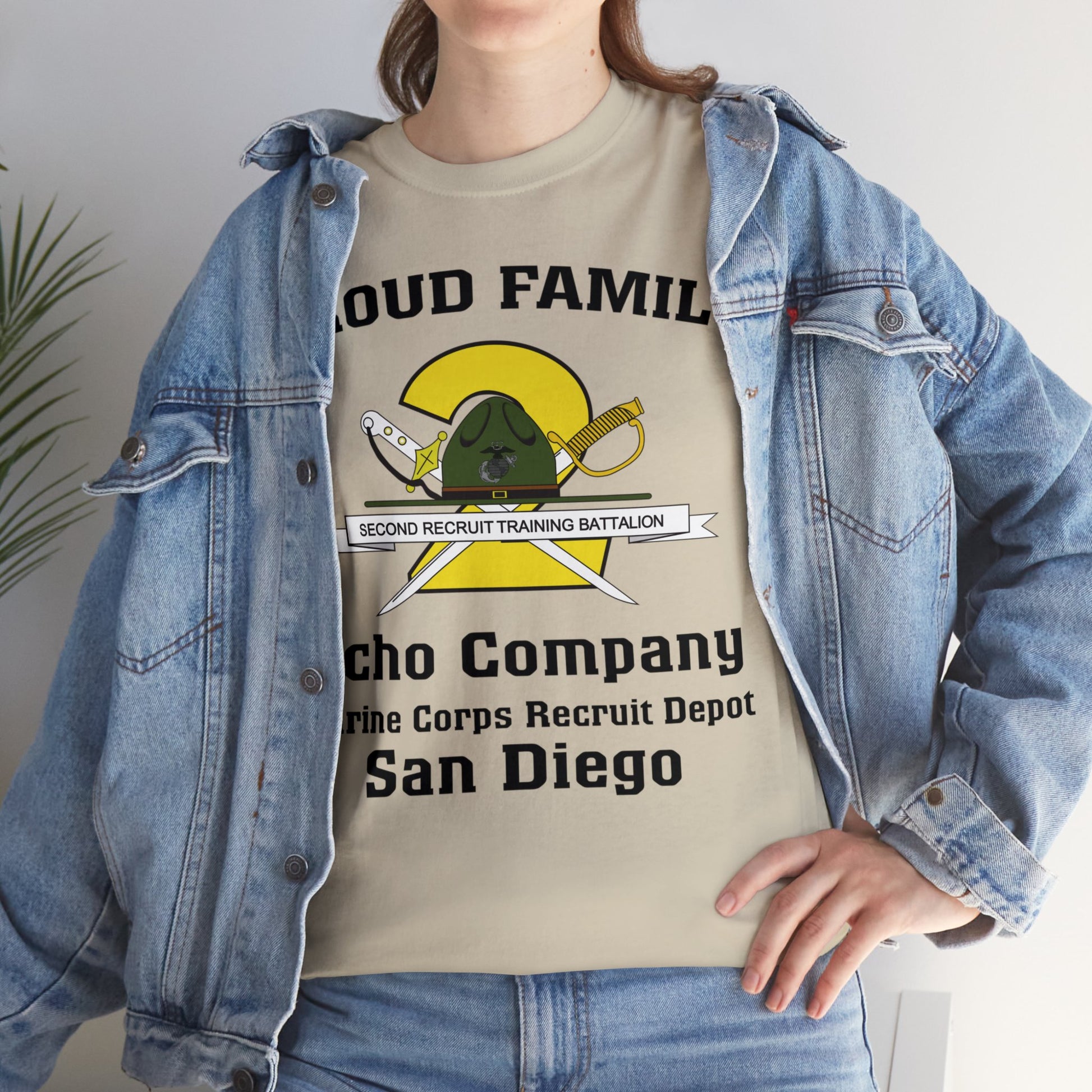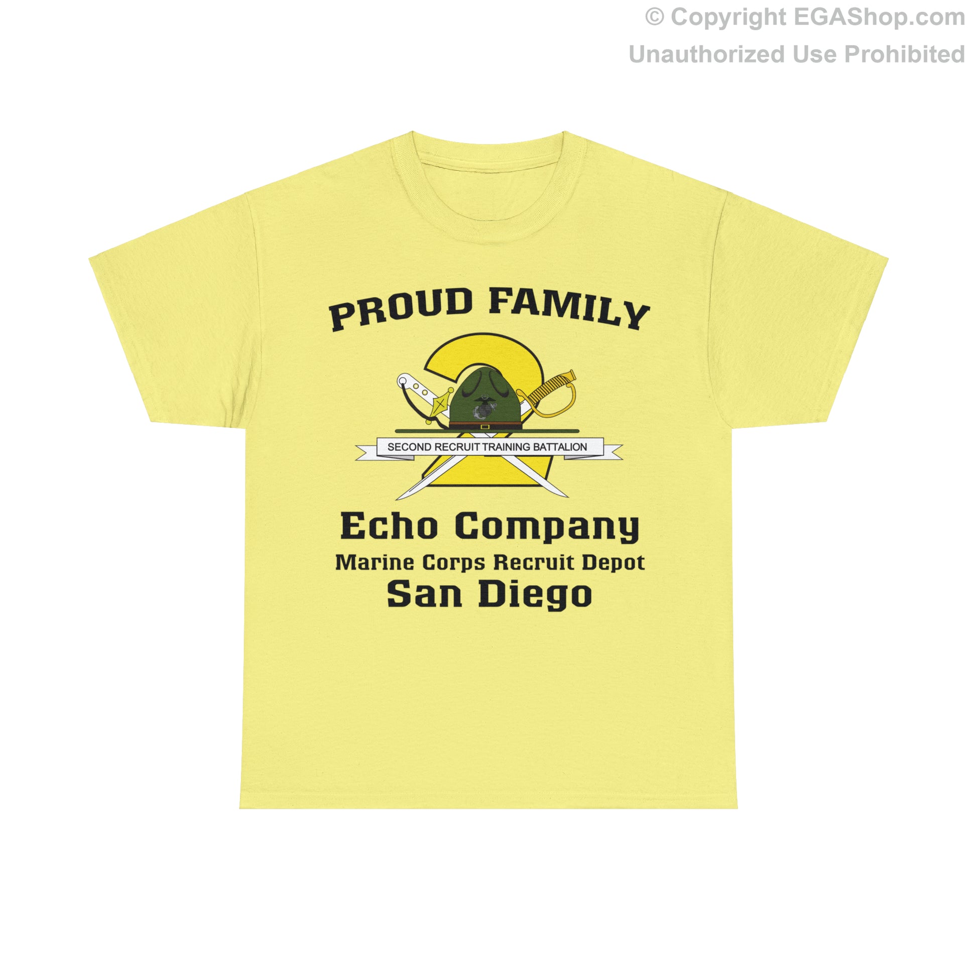 The front of the shirt includes the 2nd Recruit Training Battalion crest plus Echo Company Marine Corps Recruit Depot San Diego. The back is blank.