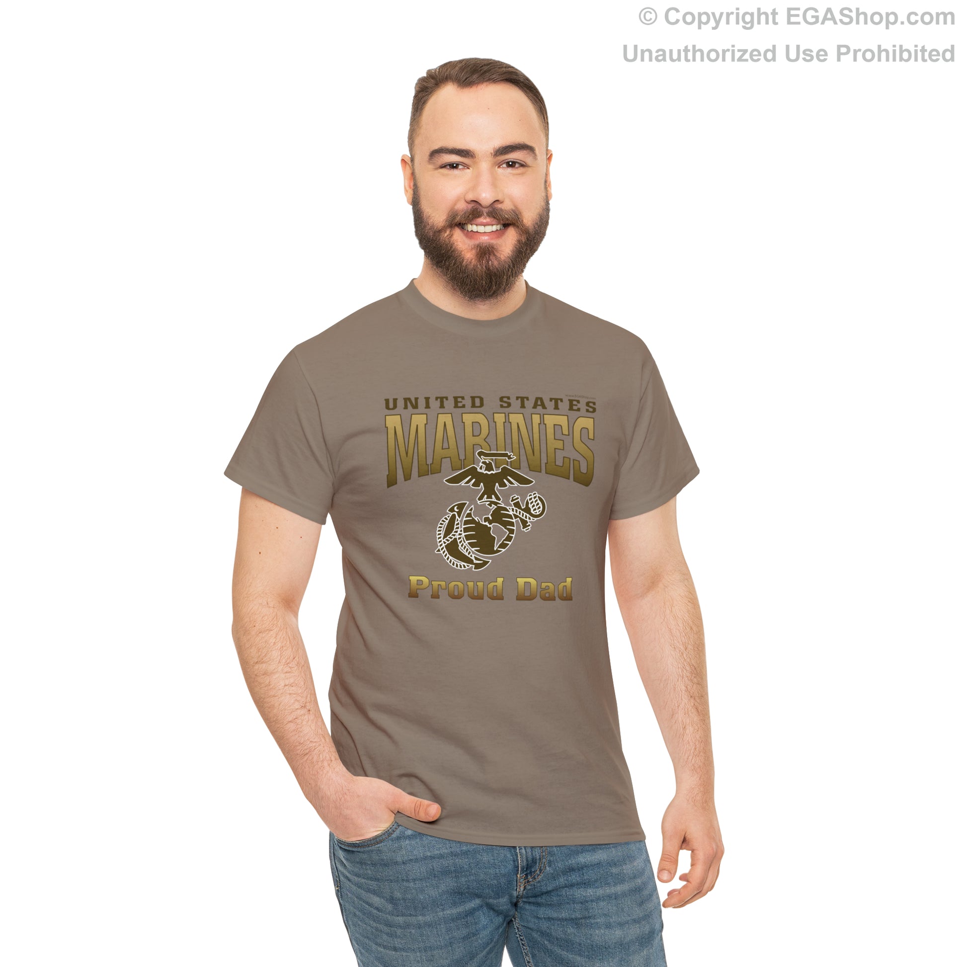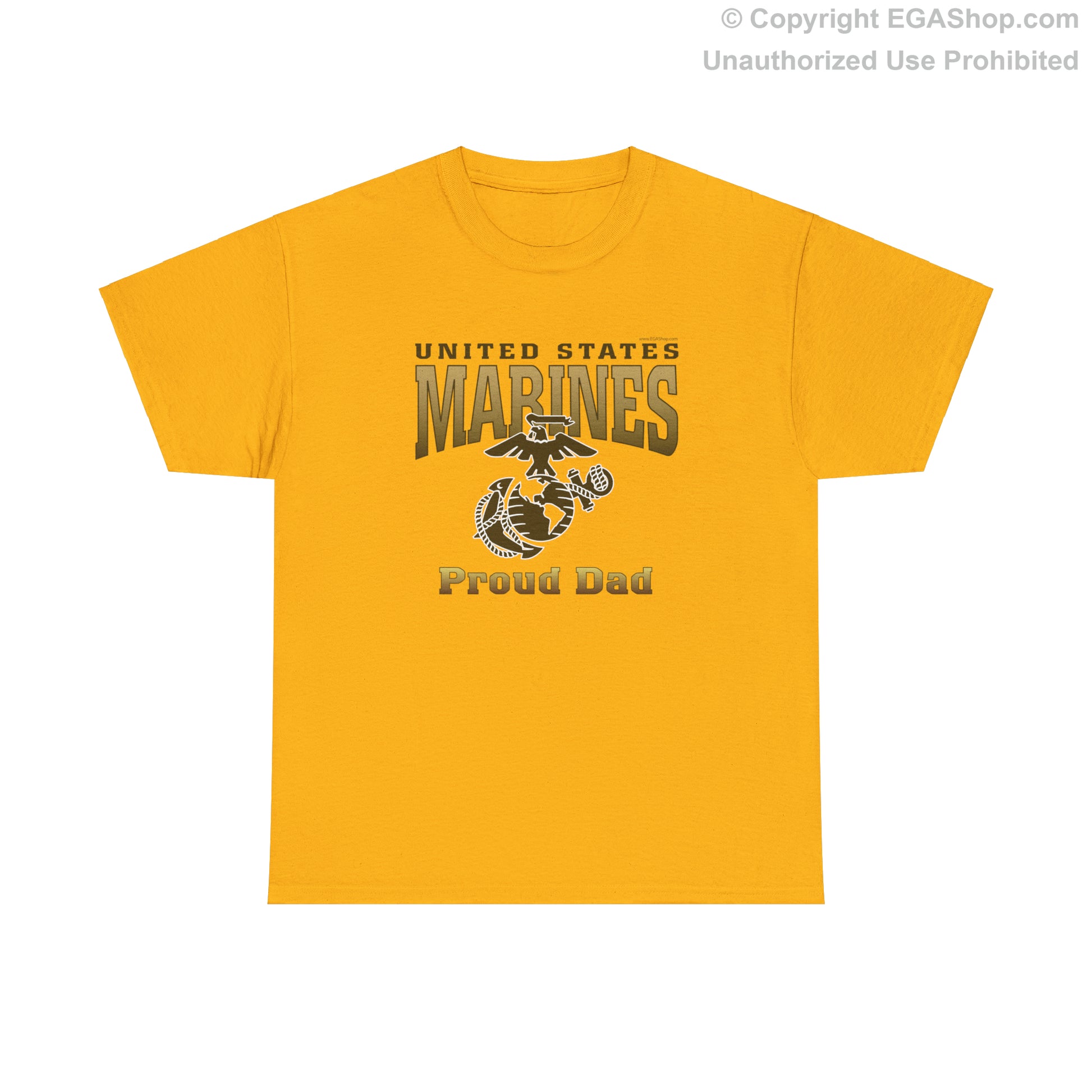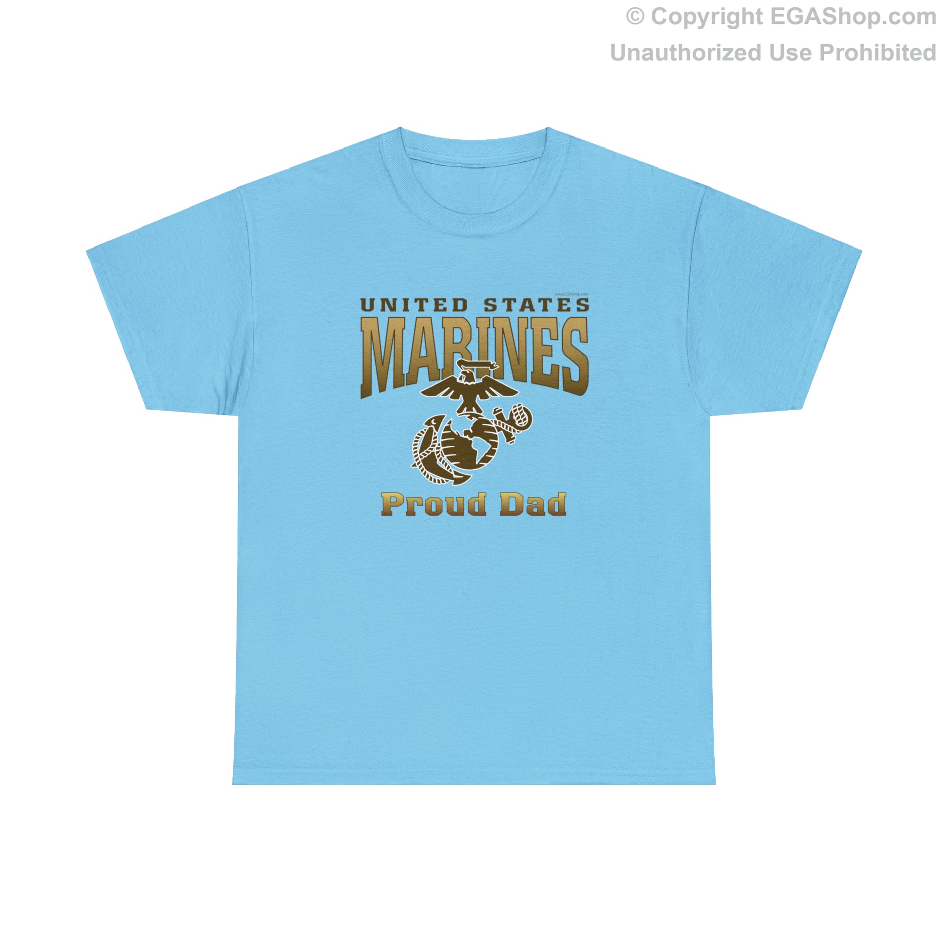 This design features United States Marines over the Eagle, Globe, and Anchor (EGA) and text below that reads PROUD DAD. The back is blank.