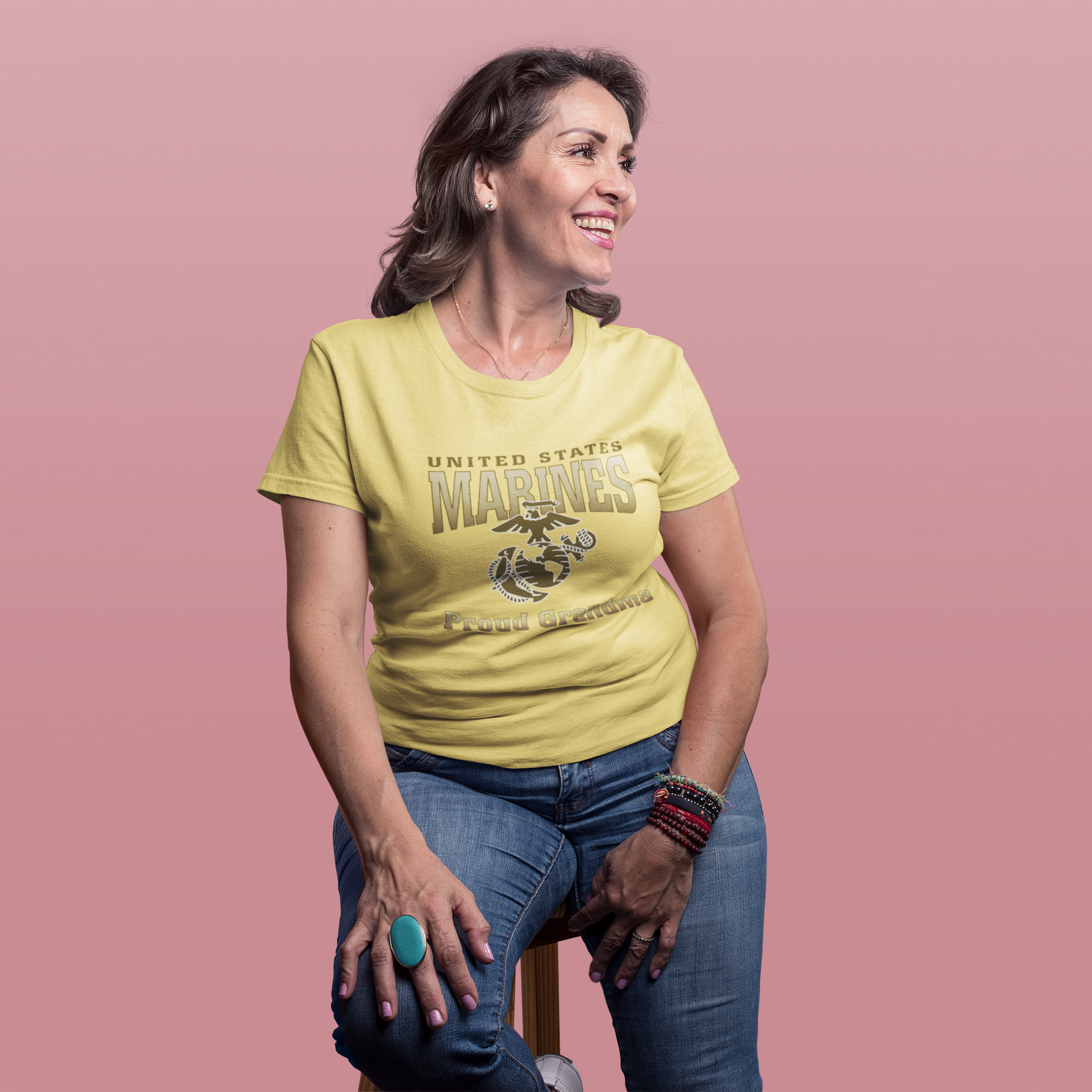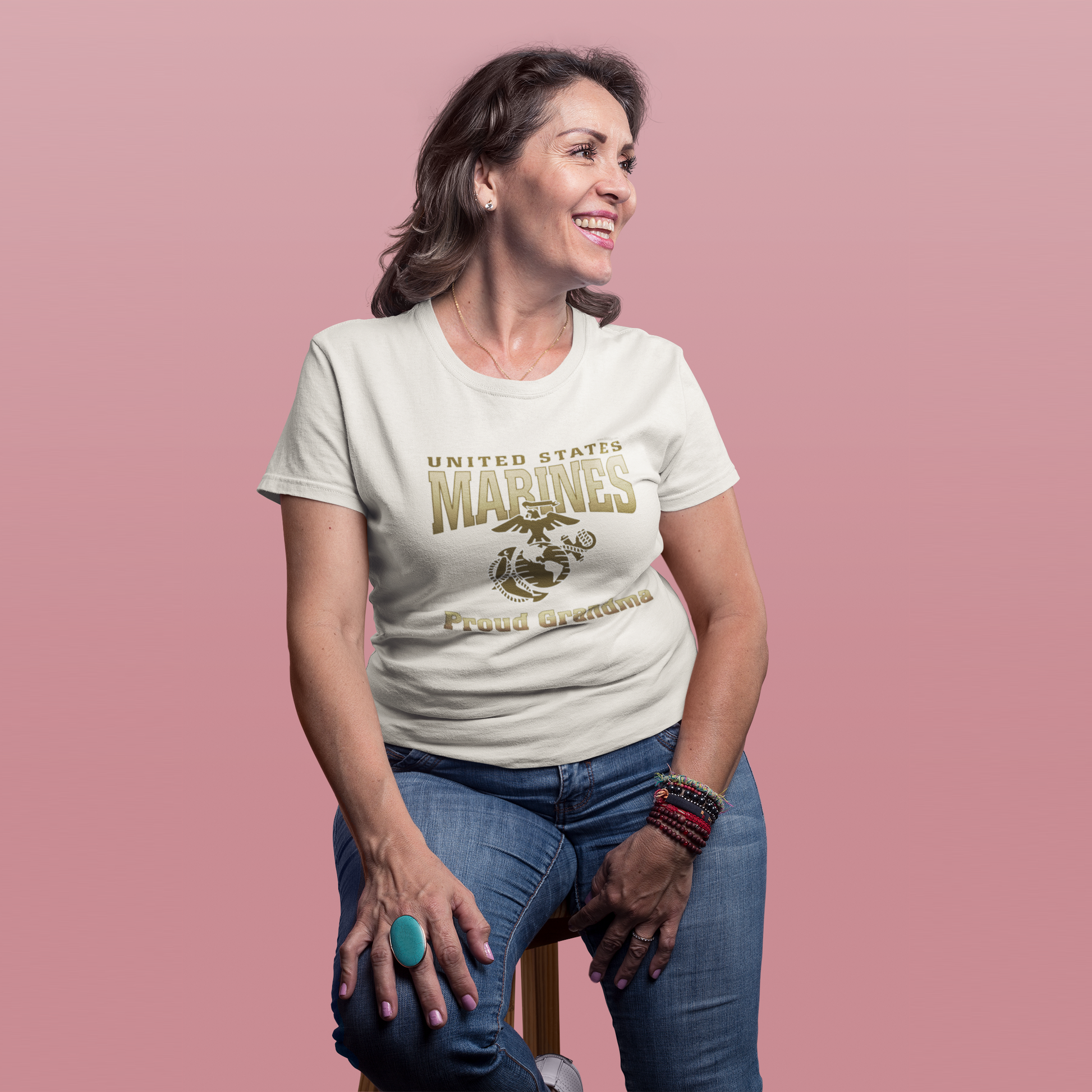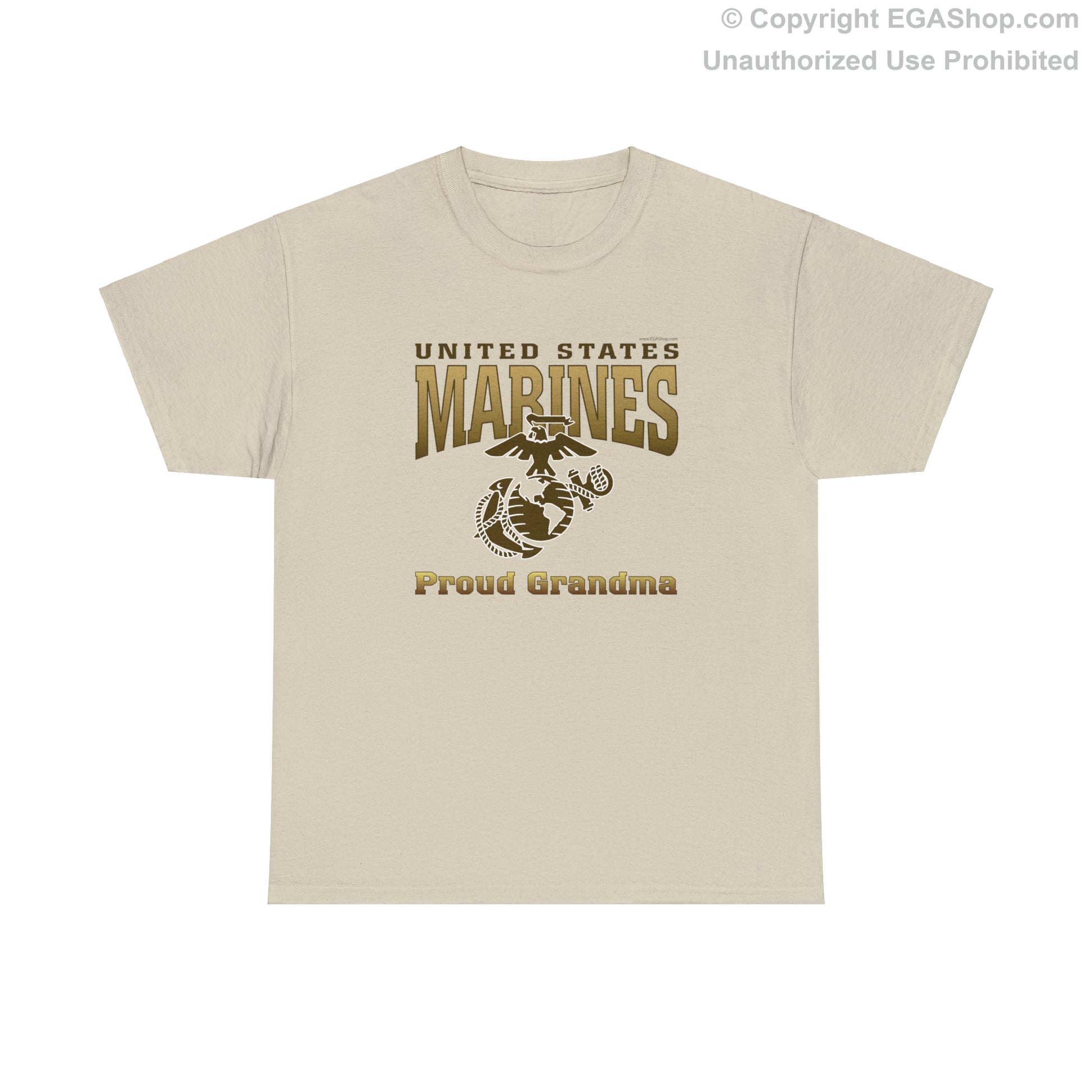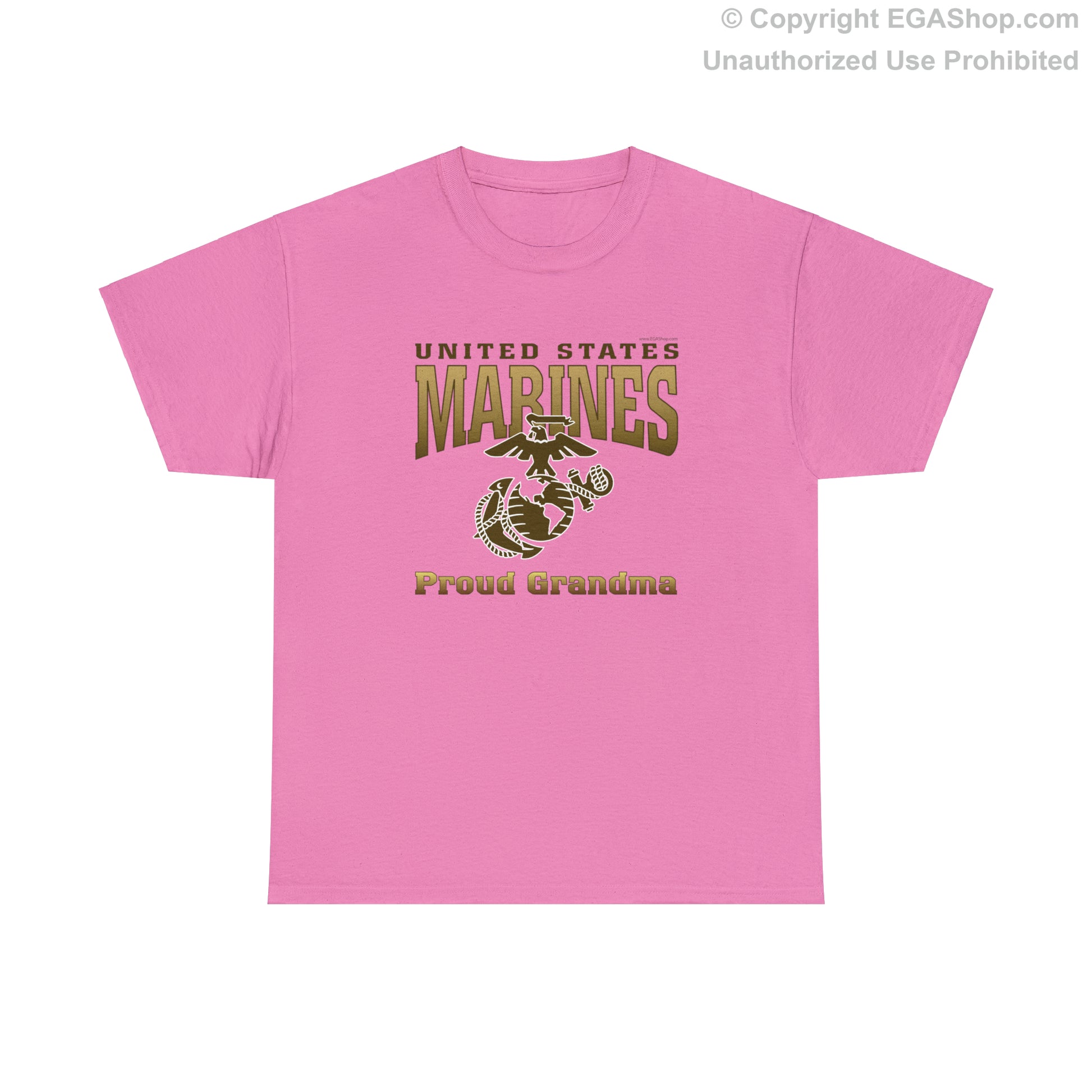 This design features United States Marines over the Eagle, Globe, and Anchor (EGA) and text below that reads Proud Grandma. The back is blank.