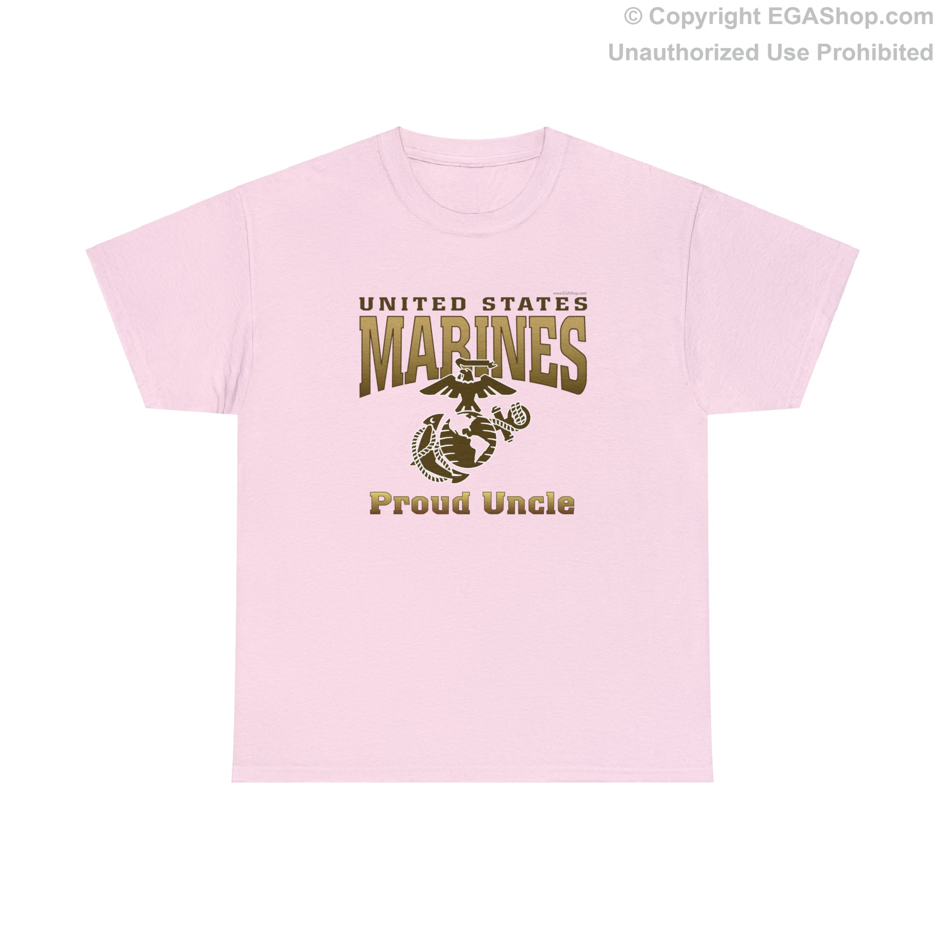 This design features United States Marines over the Eagle, Globe, and Anchor (EGA) and text below that reads Proud Uncle. The back is blank.