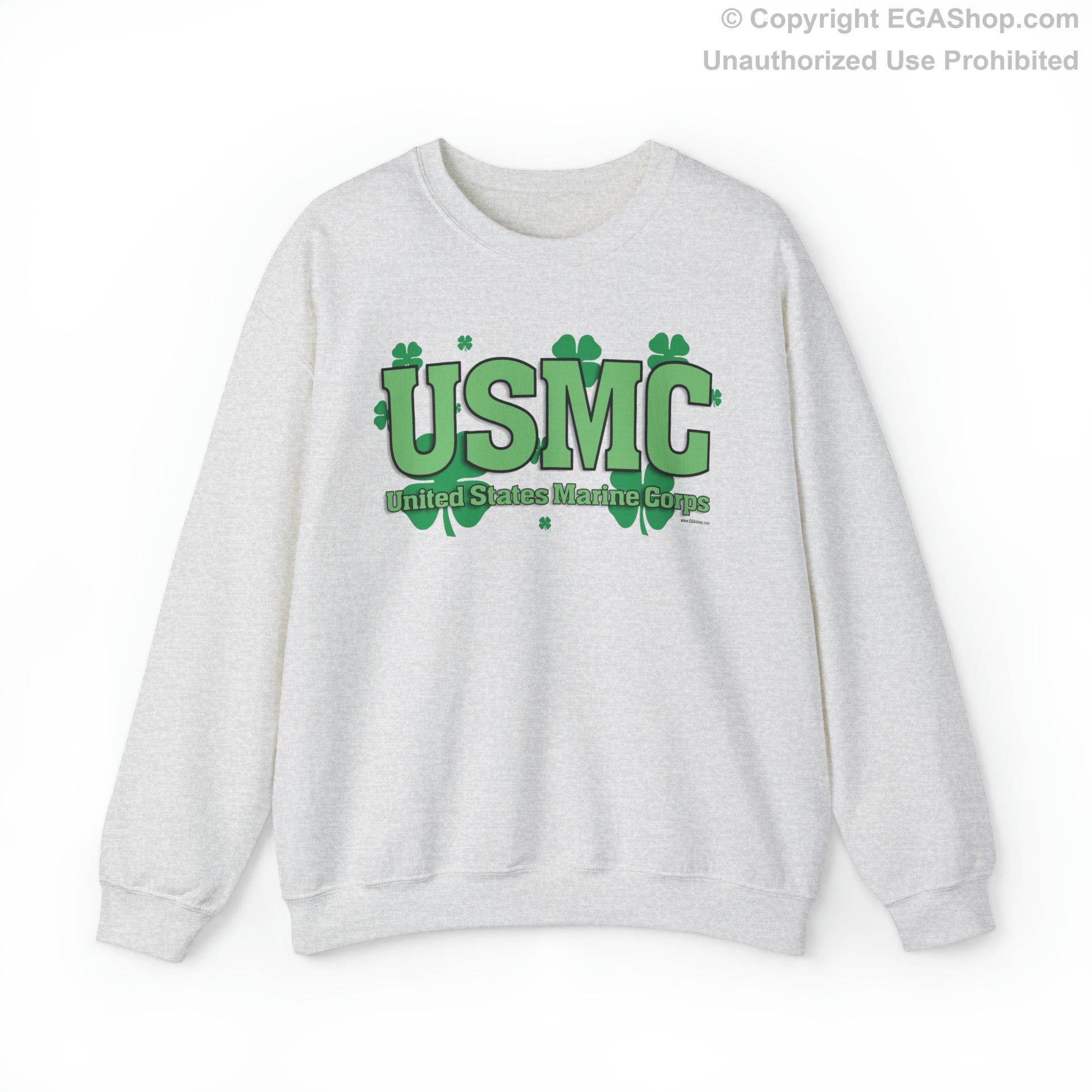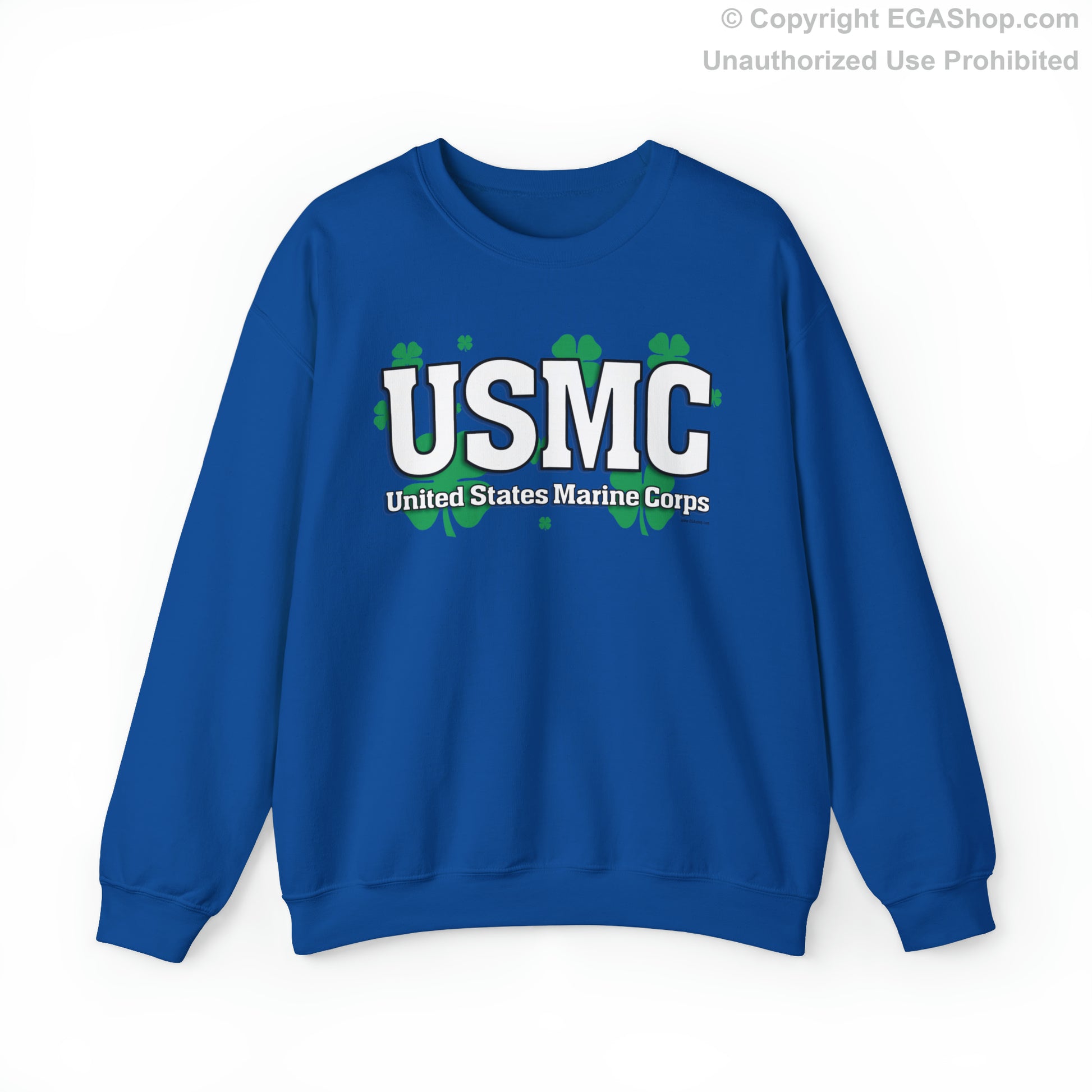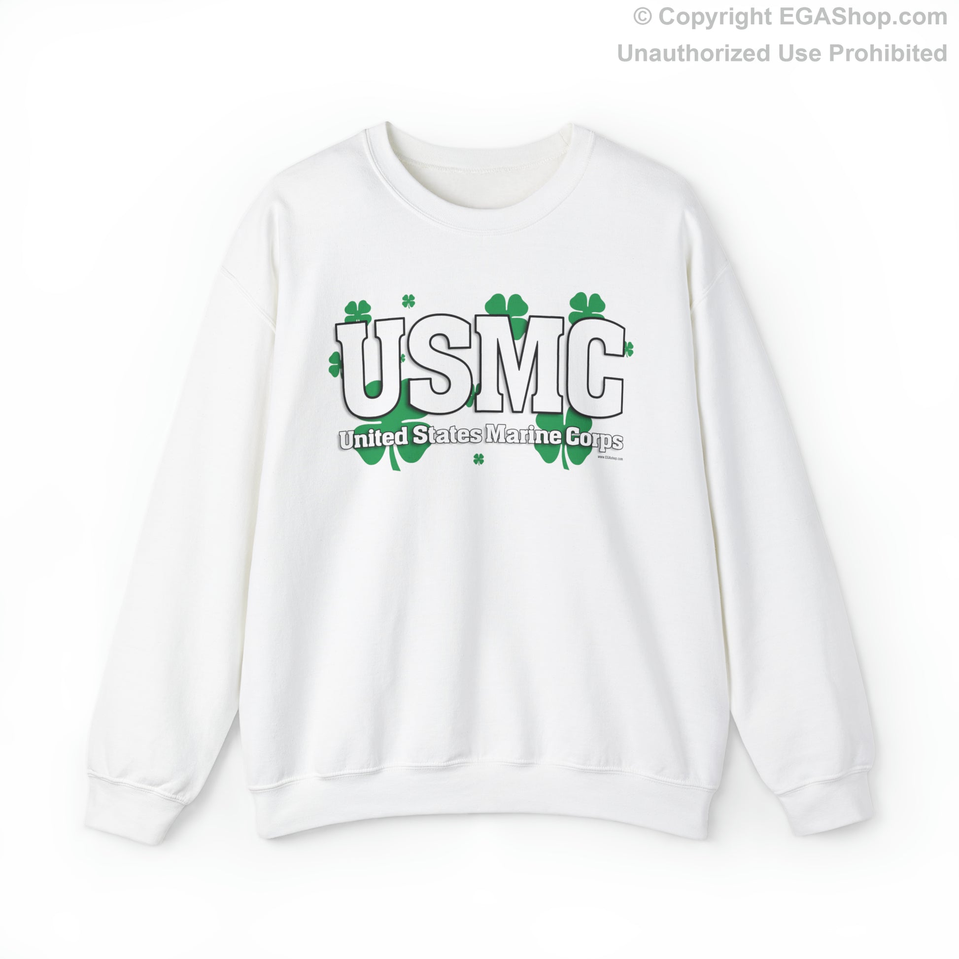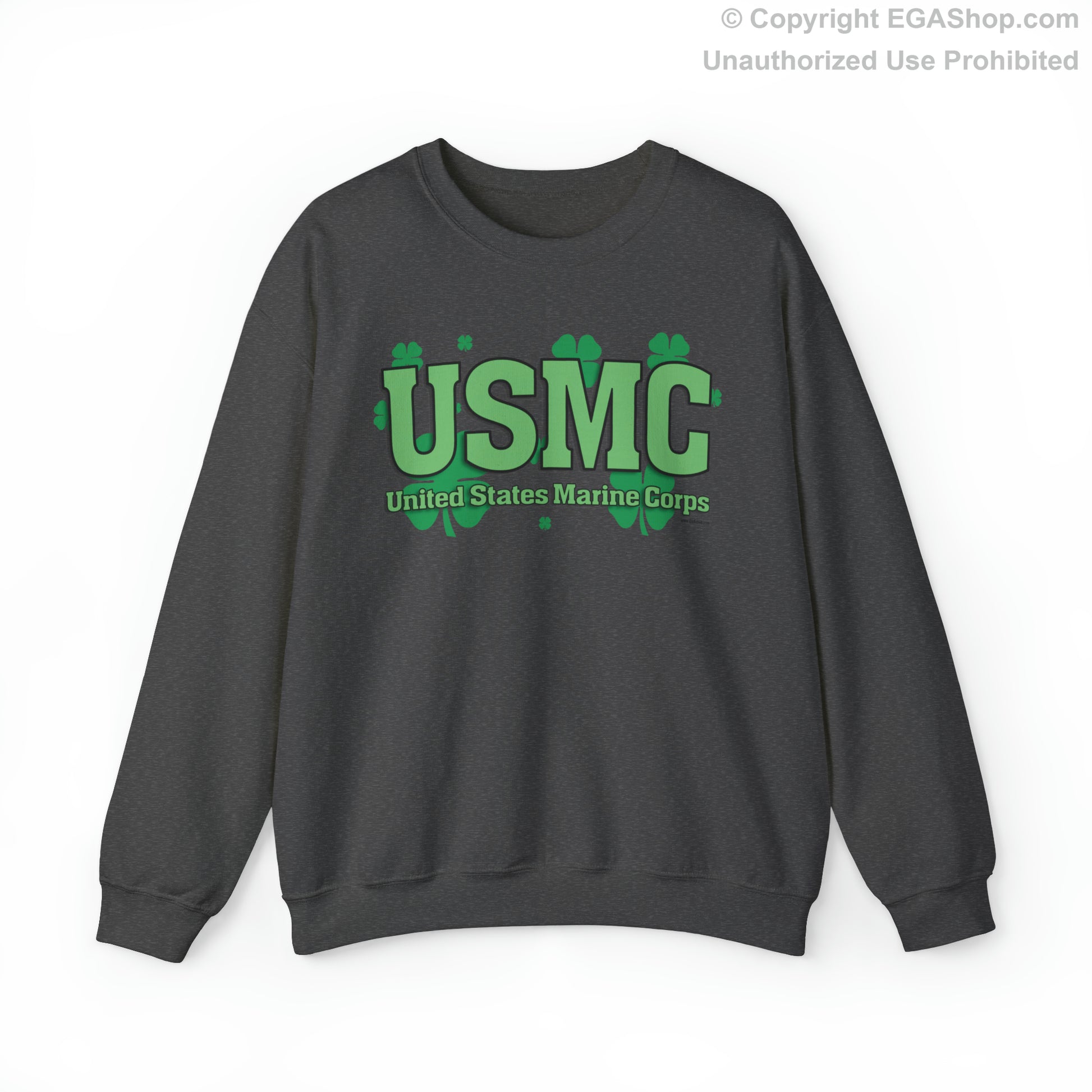 Get your green on! St. Patrick's Day is around the corner, and our sweatshirt assures you're in the green and showing pride in your Marine! The front of the sweatshirt includes USMC and United States Marine Corps, plus a scattering of shamrocks (four leaves for good luck!).