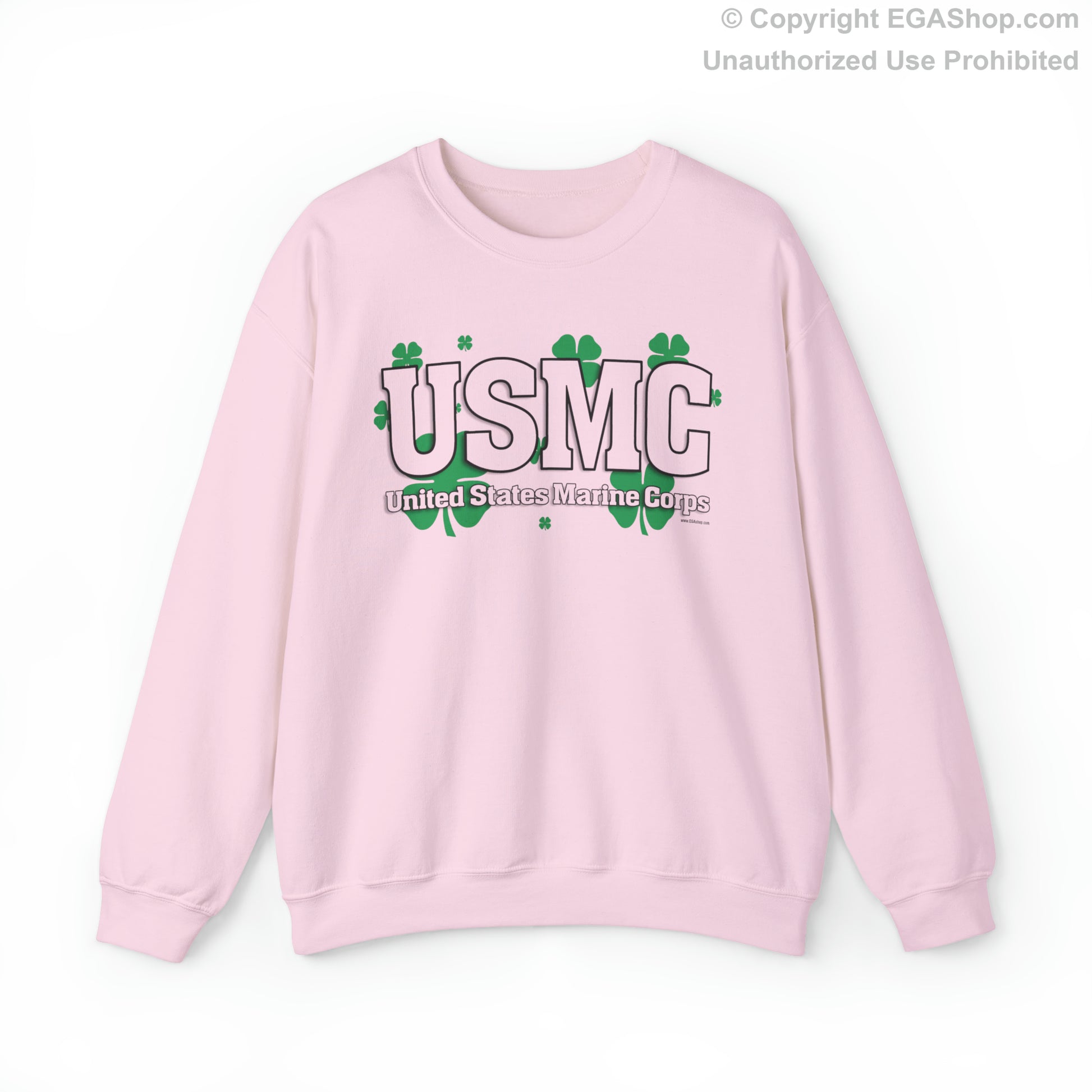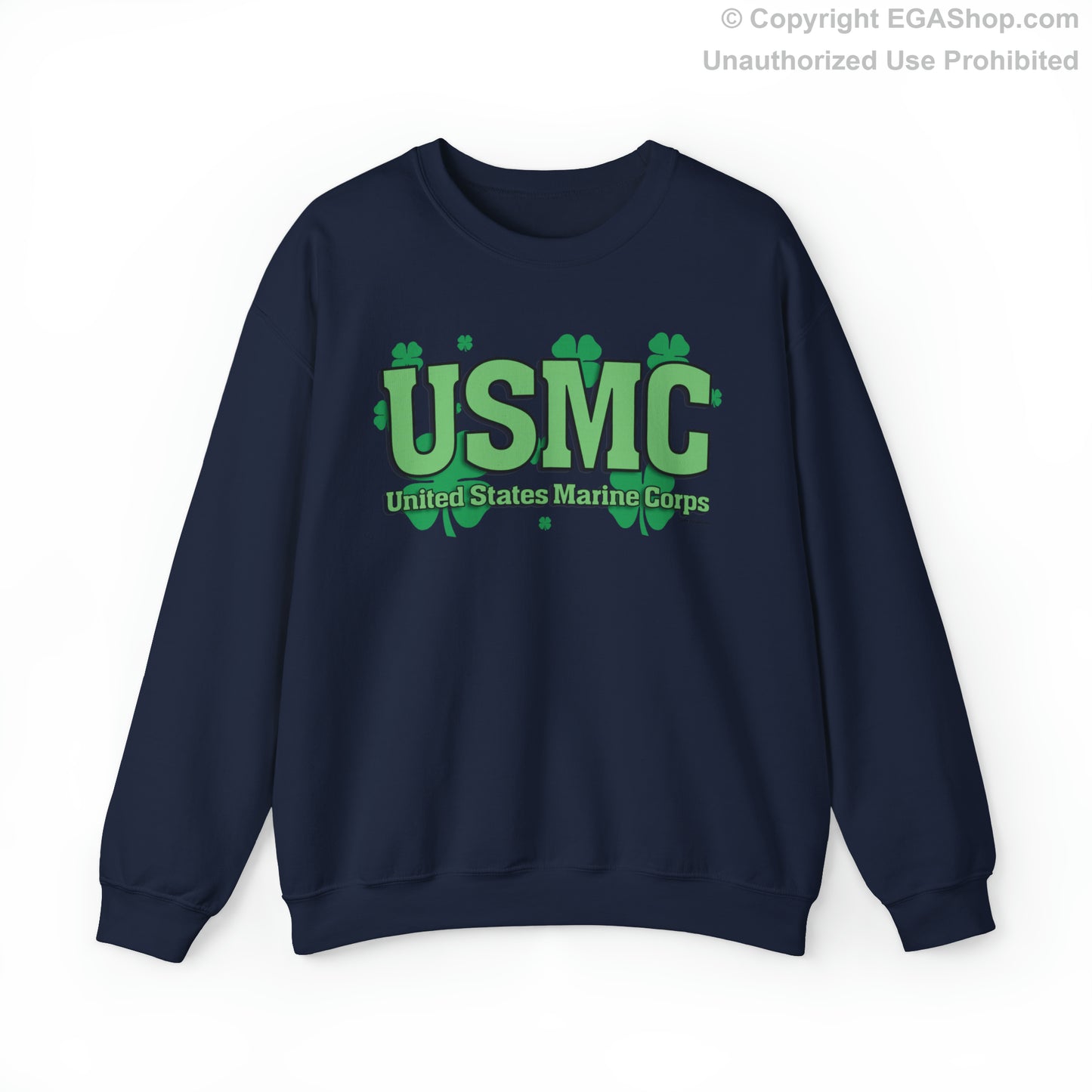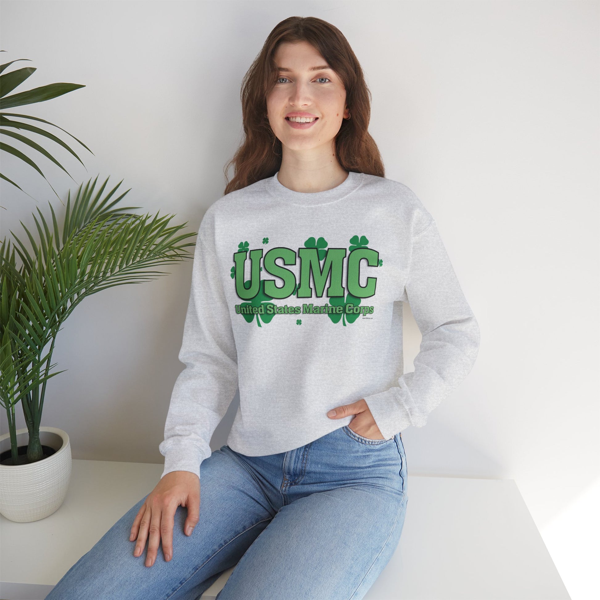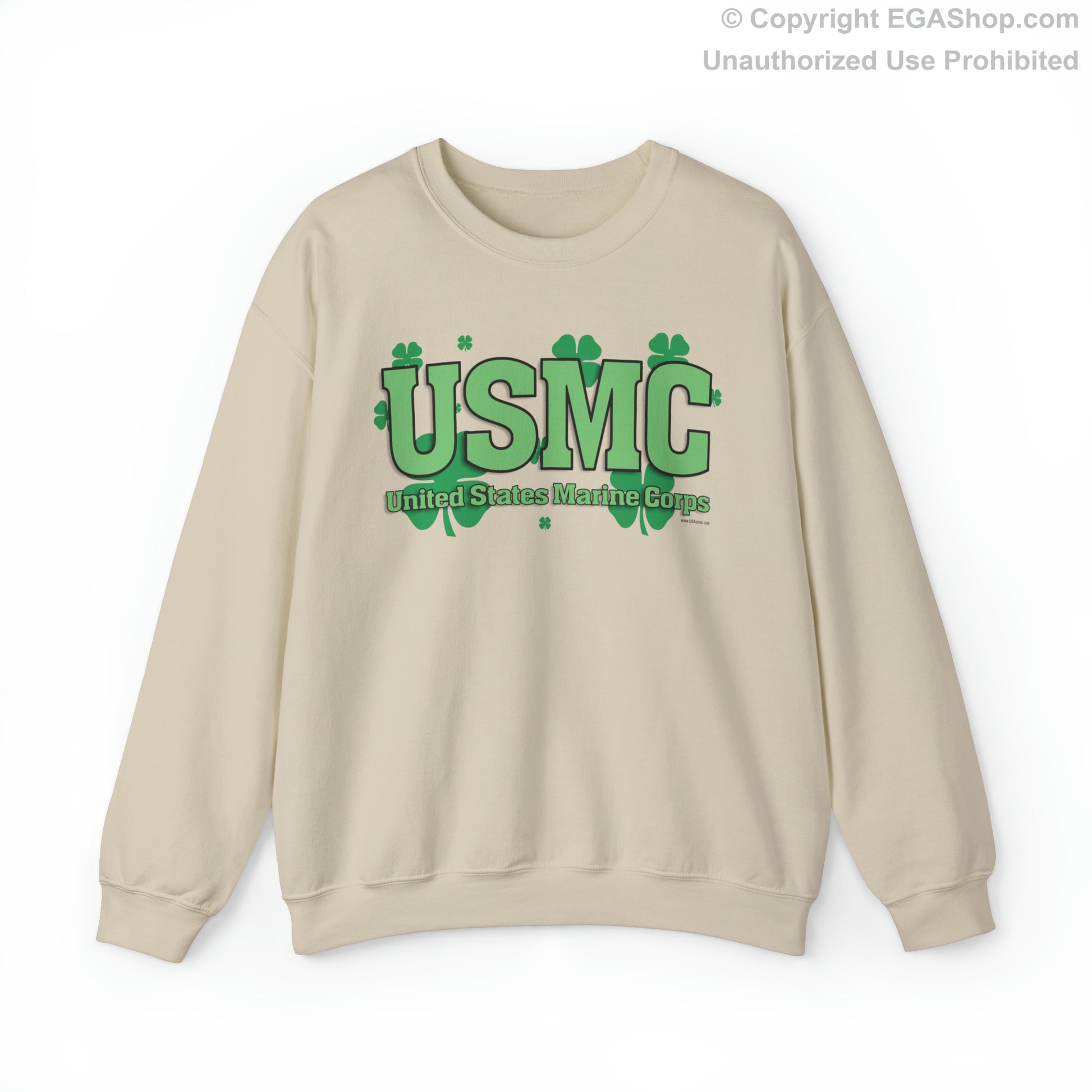 Get your green on! St. Patrick's Day is around the corner, and our sweatshirt assures you're in the green and showing pride in your Marine! The front of the sweatshirt includes USMC and United States Marine Corps, plus a scattering of shamrocks (four leaves for good luck!).
