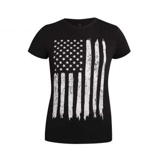 Highlight your pride for the United States with our Women's Distressed US Flag Long T-Shirt. The women’s American flag shirt displays a vertical distressed US flag print on the center chest and a reverse distressed US flag graphic on the right sleeve. Longer than our traditional women’s t-shirts, the long US flag tee features a tagless label for added comfort and provides a different style and feel. In sizes XS-2X.