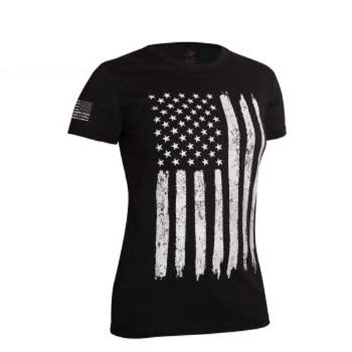 T-Shirt: Womens Distressed US Flag, Long Style