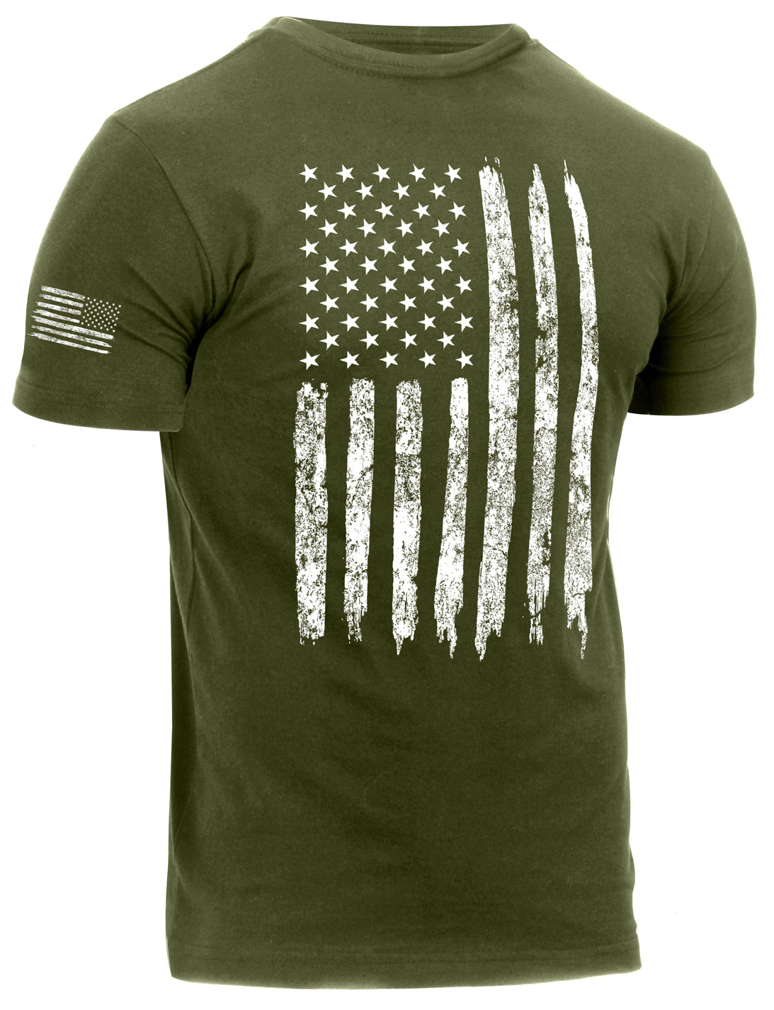 Showcase your American pride with this distressed US flag athletic fit T-Shirt.